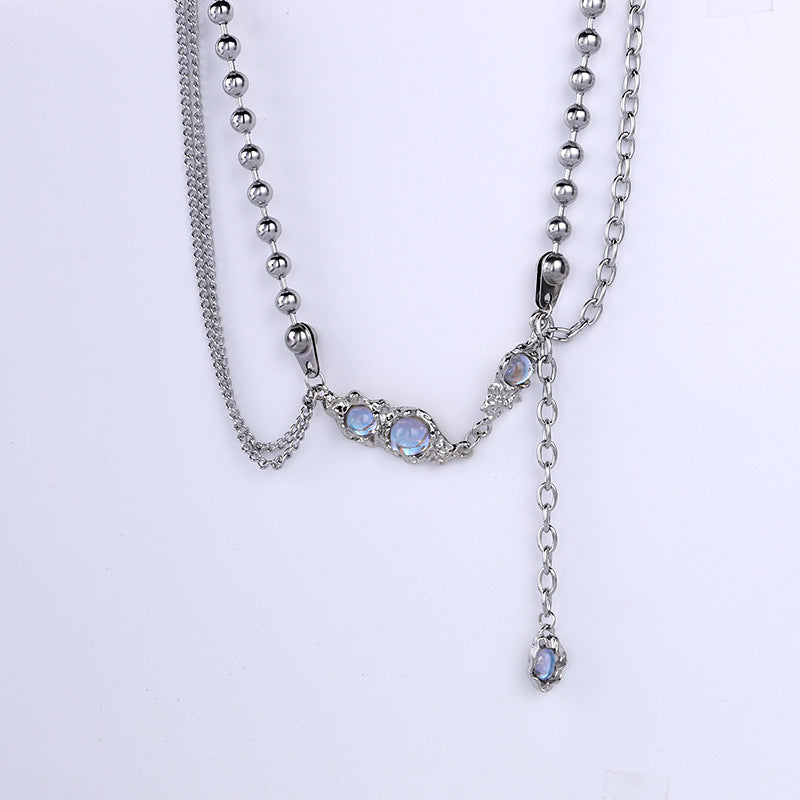 Moonlight series original design silver necklace light luxury small number Moonlight stone clavicle chain titanium steel accessories temperament