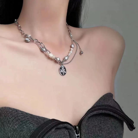 Fake double-layer necklace with shaped pearls and a high sense of sophistication