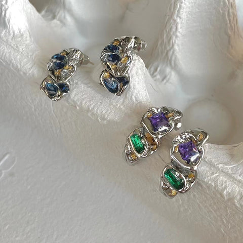 Wrinkled texture, gold foil with diamond, cool wind, versatile, hot Earrings