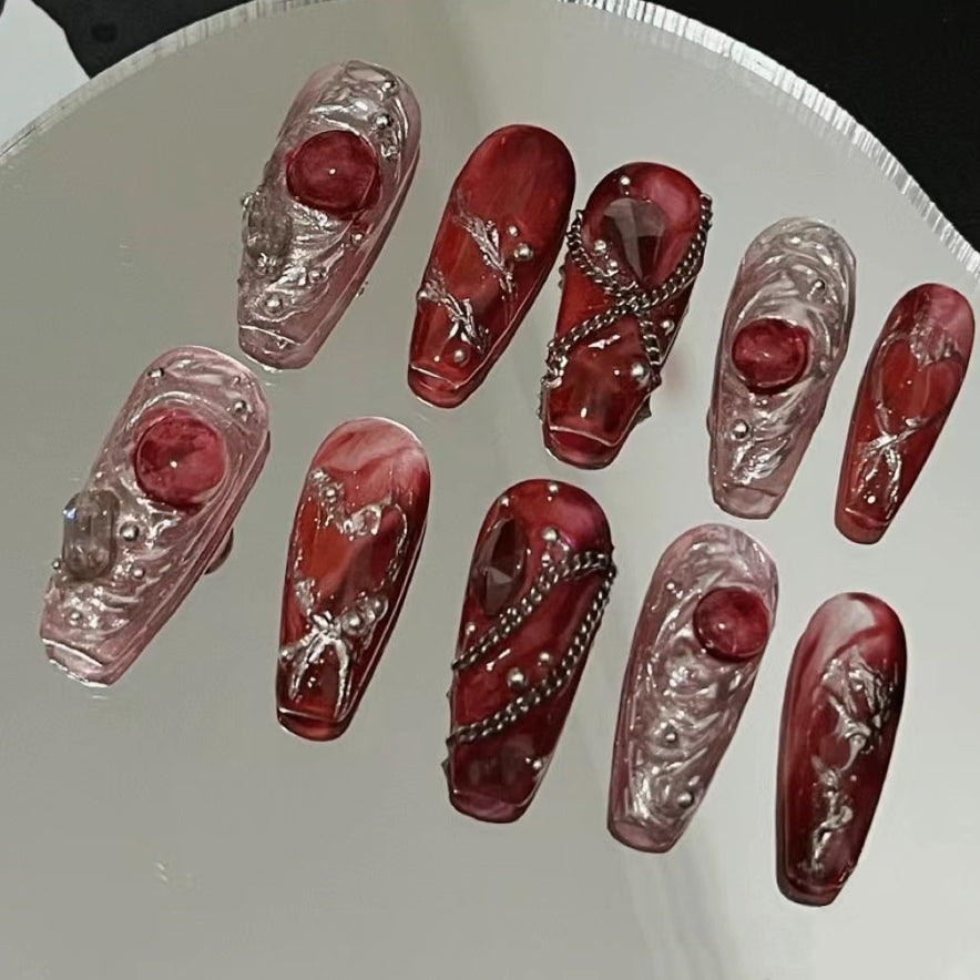 Ox Blood Red Hand Nail Enhancement Students can repeatedly use Dark Millennium Spicy Girls