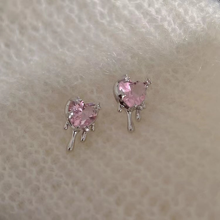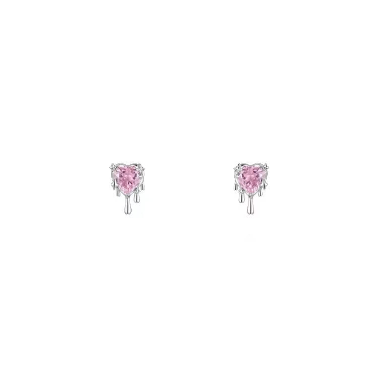 New Earrings Sweet and Cool Love Pink Zircon Earrings Popular Design Premium Cold Air Lava Earrings