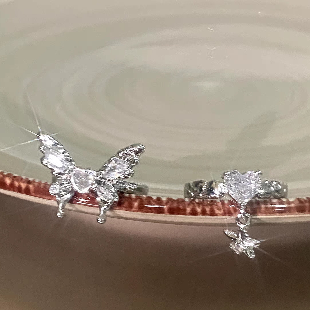 European and American sweet and cool drop glaze design butterfly ring, niche light luxury, fashionable and exquisite index finger ring