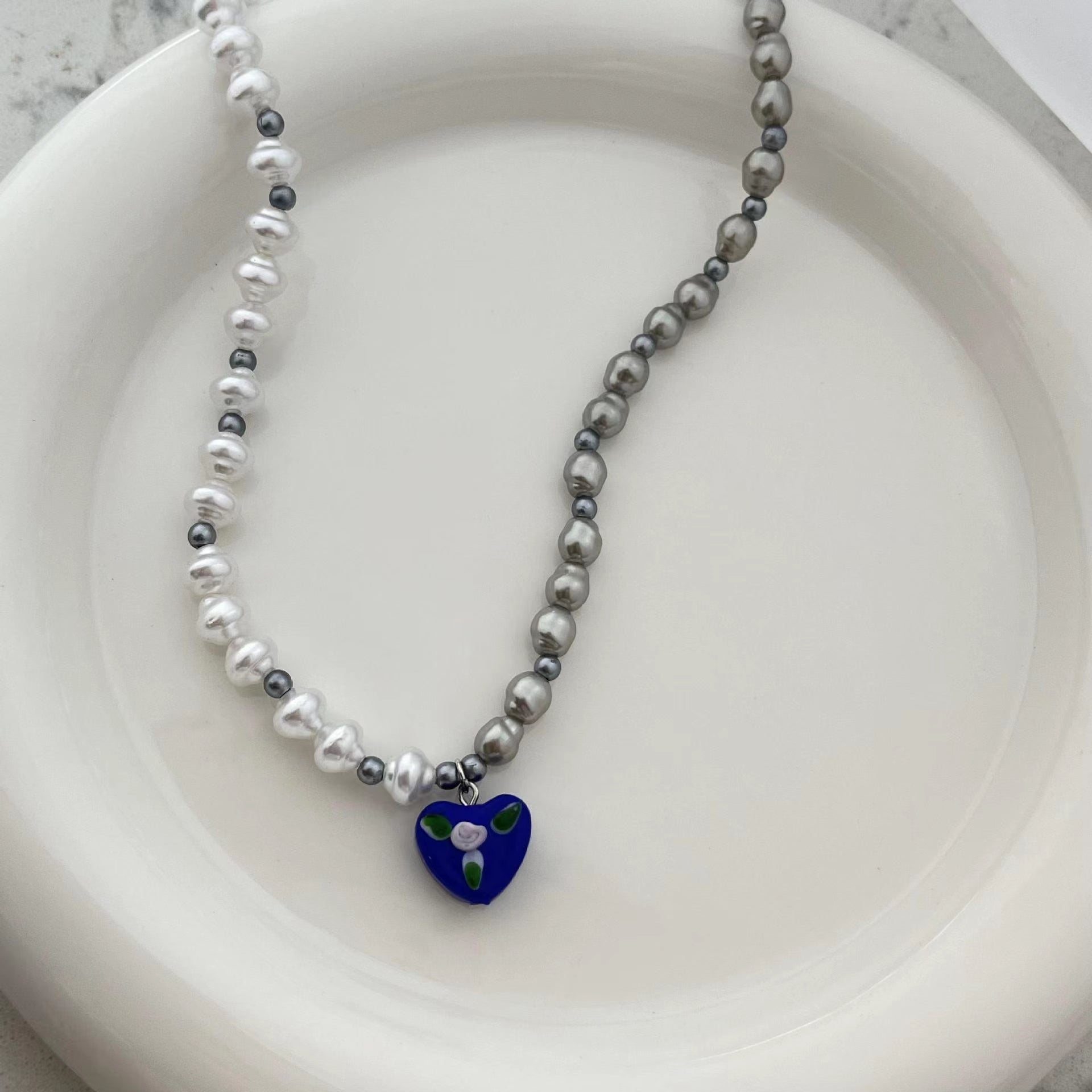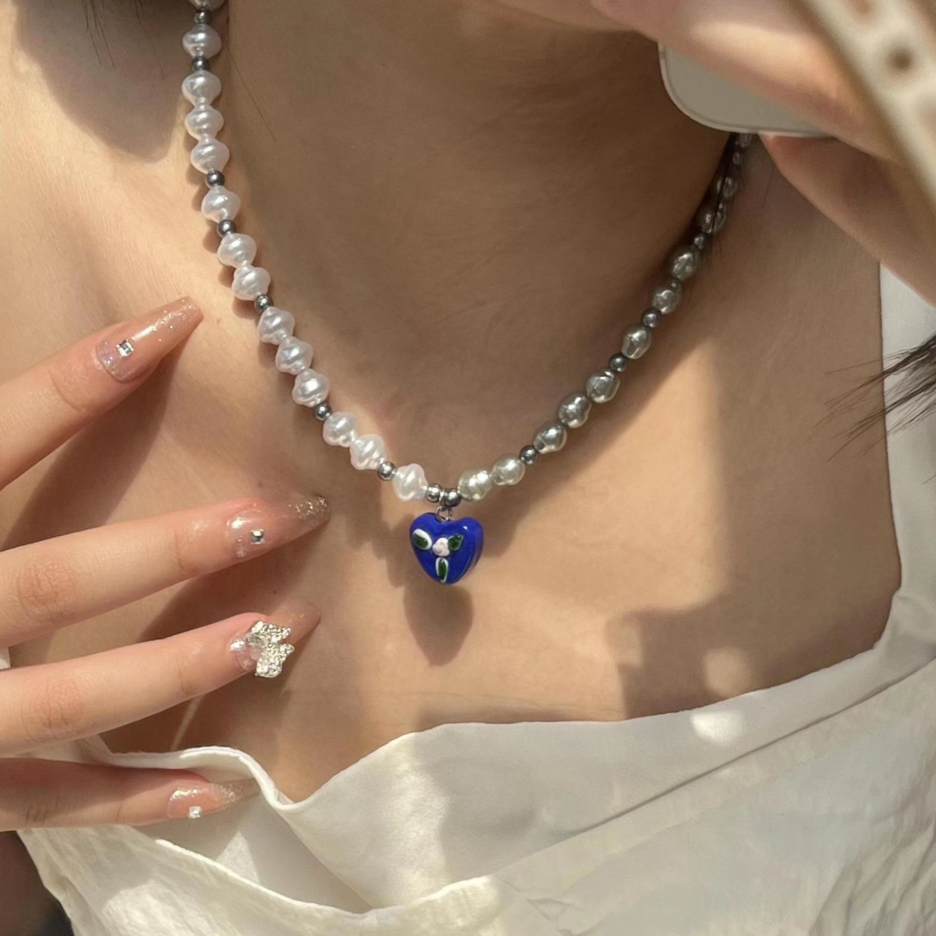 Retro minority design: special shaped pearl splicing necklace, light and extravagant dripping rubber, Love Pendant