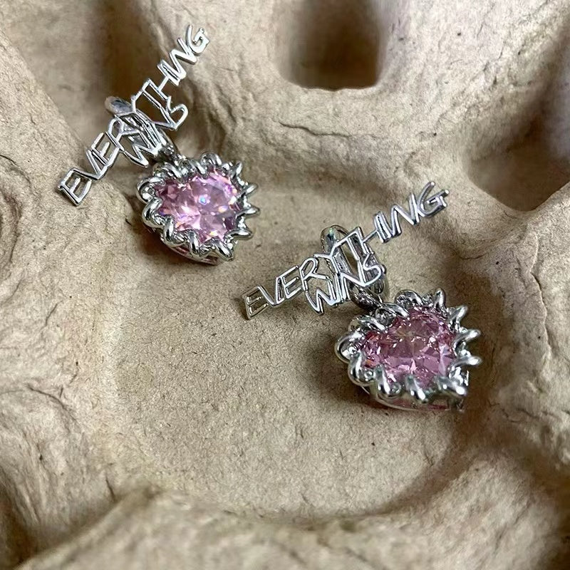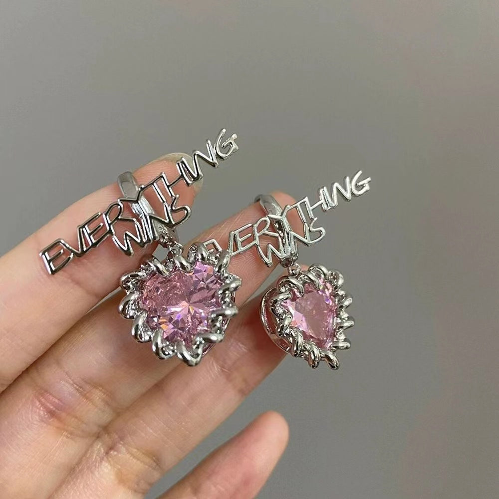 Design sense pink diamond love y2k spicy girl ins style niche design earrings