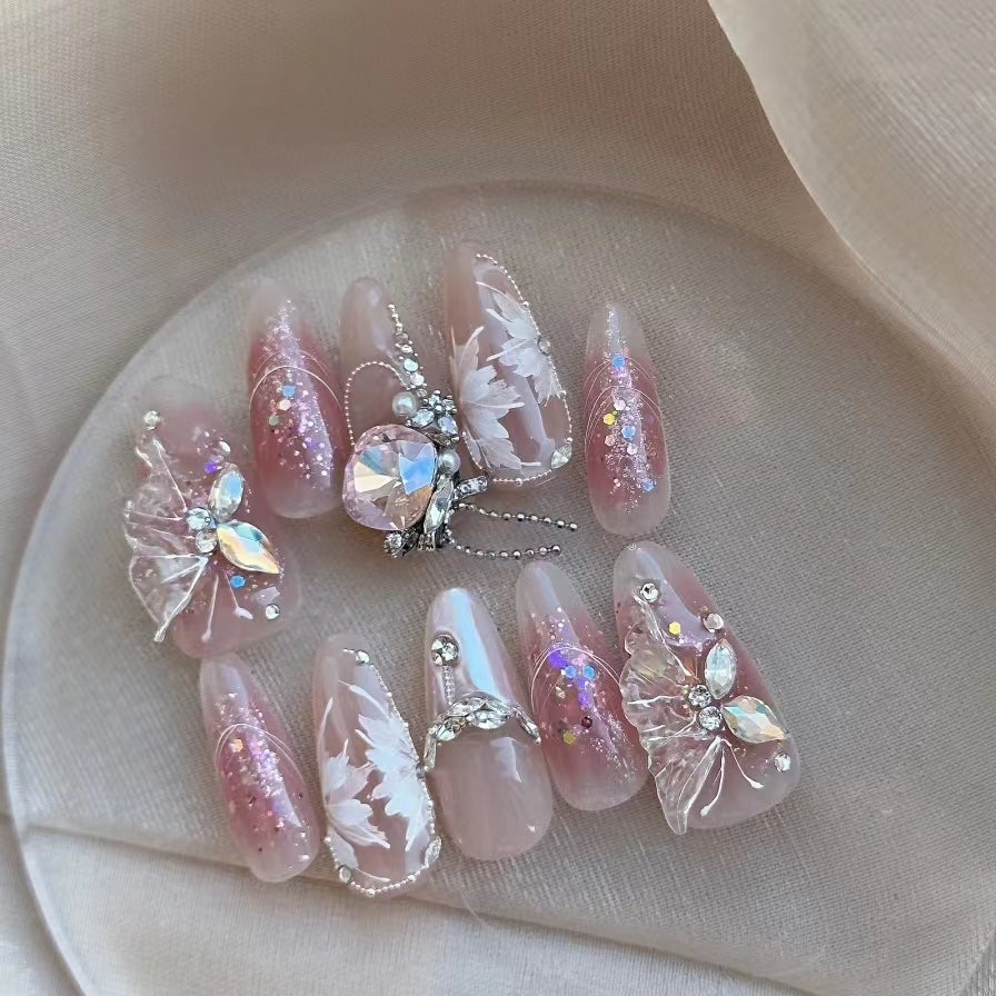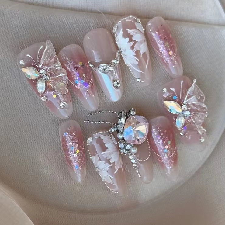 Light luxury pile diamond hand-painted flower fairy gas pure handmade wearable nail patch with detachable nail art