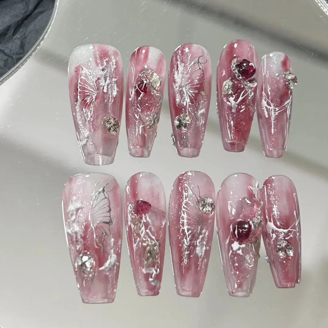 Sweetheart Butterfly Ice Penetrating Nail Enhancement Gradual Berry Pink Fairy Air Shining Diamond Gentle Wearing Nail Patch