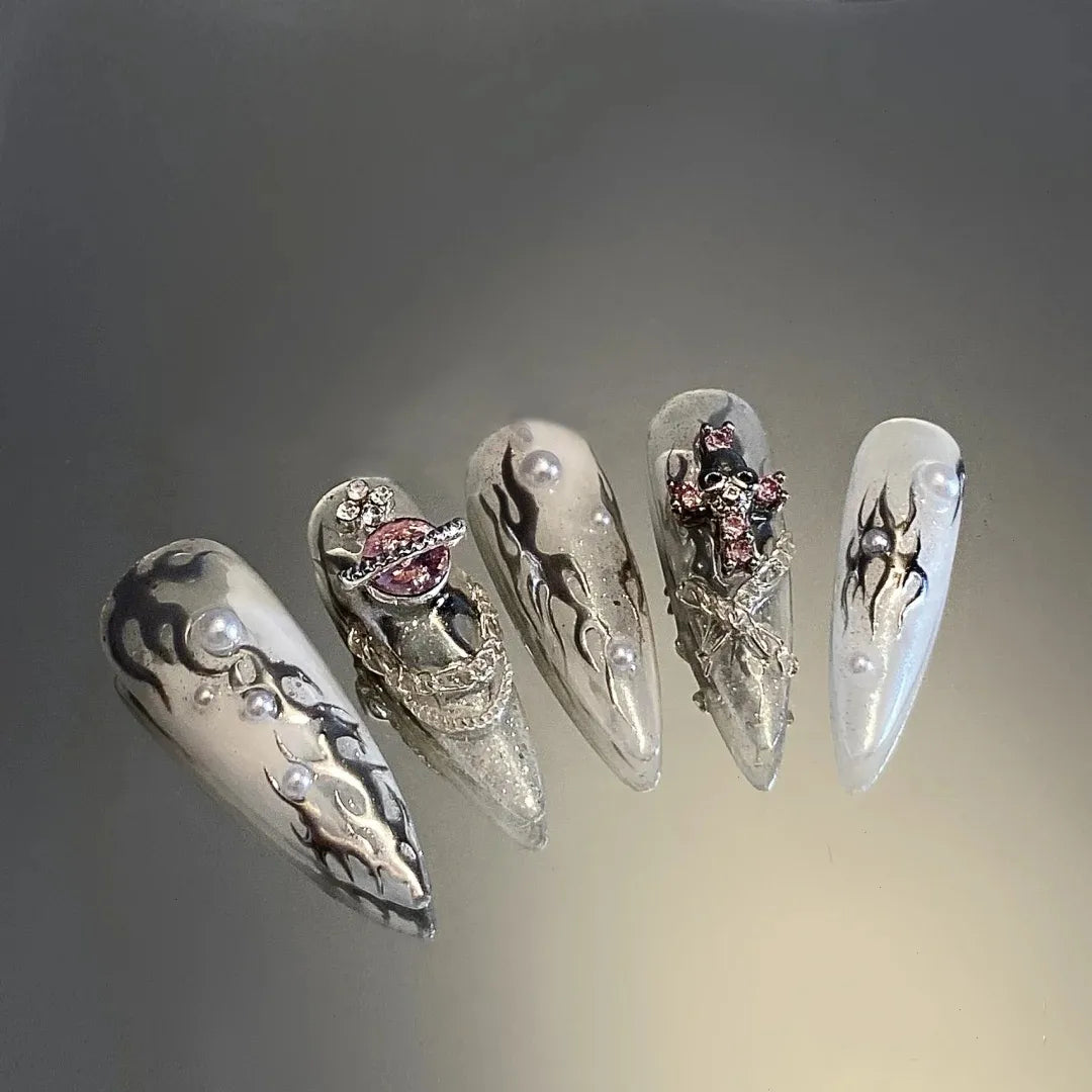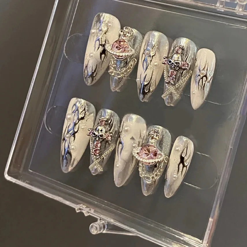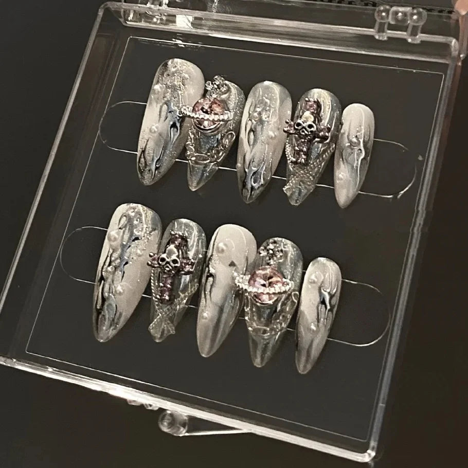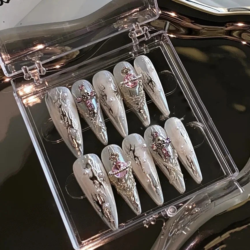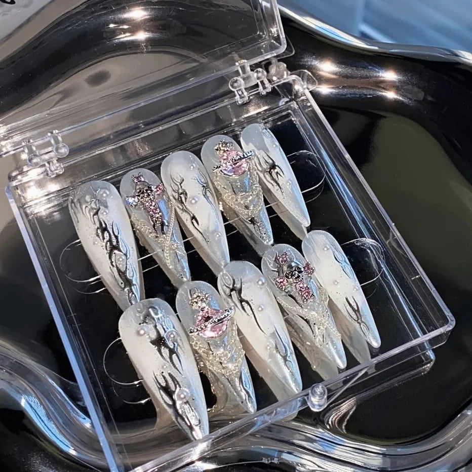 The new big diamond ultra-flash series mesh red wearable false nail patch shows white removable fingernails for pregnant women