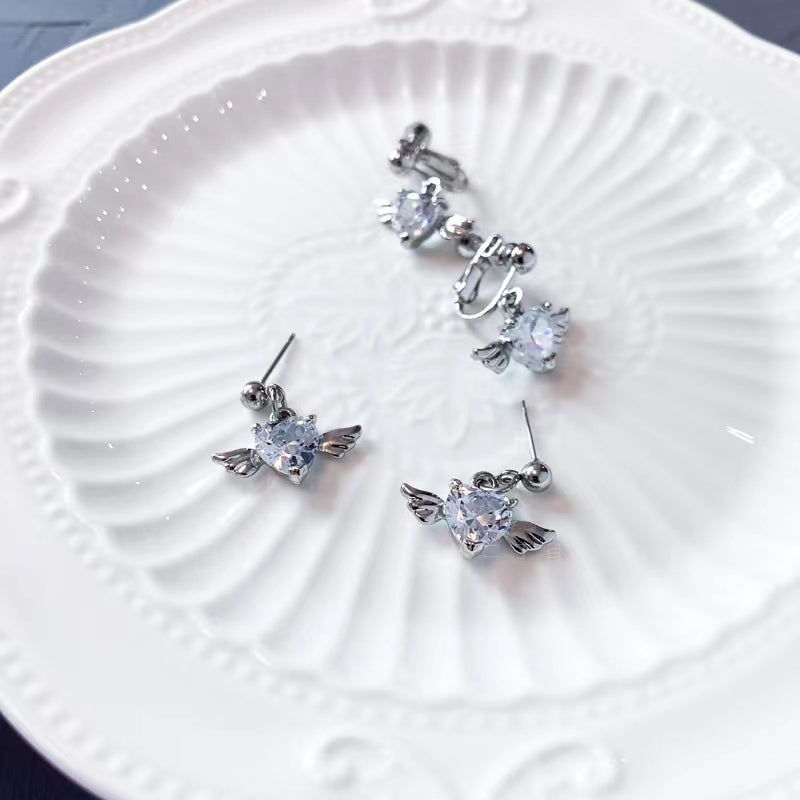 Zircon Earrings have a high sense of temperament, light luxury wings in winter, heart-shaped earrings are simple and cool