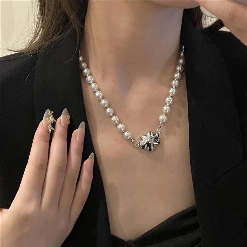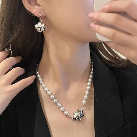 Personalized design: Pearl Starfish Earrings, the same necklace, smiling face, temperament, earrings, earrings, female