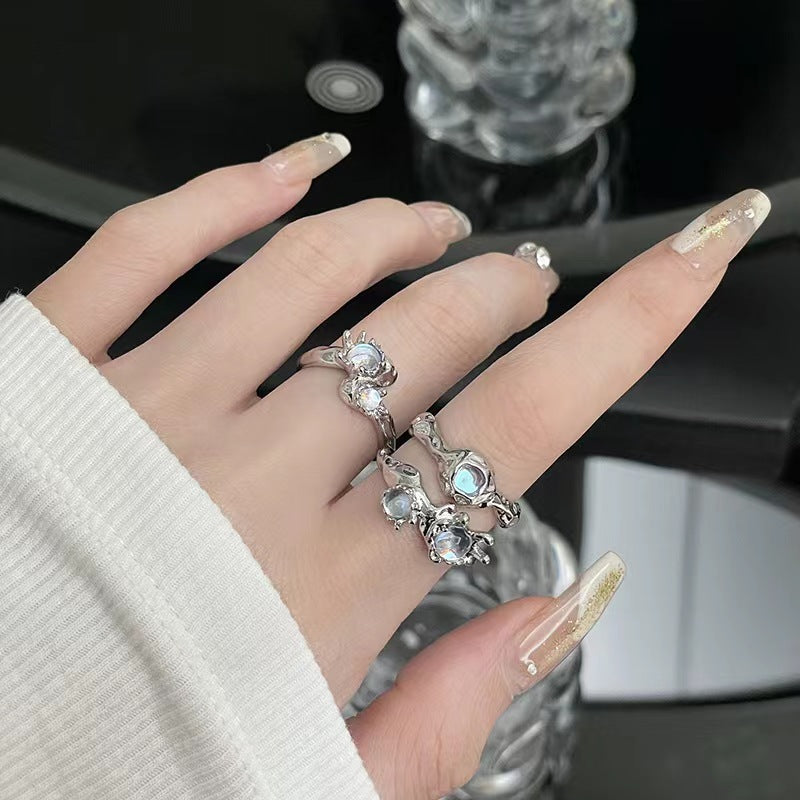 Moonlight Stone Small Design Sense INS Cold Wind Ring Female Gem High Grade Sense French Irregular Fold Ring