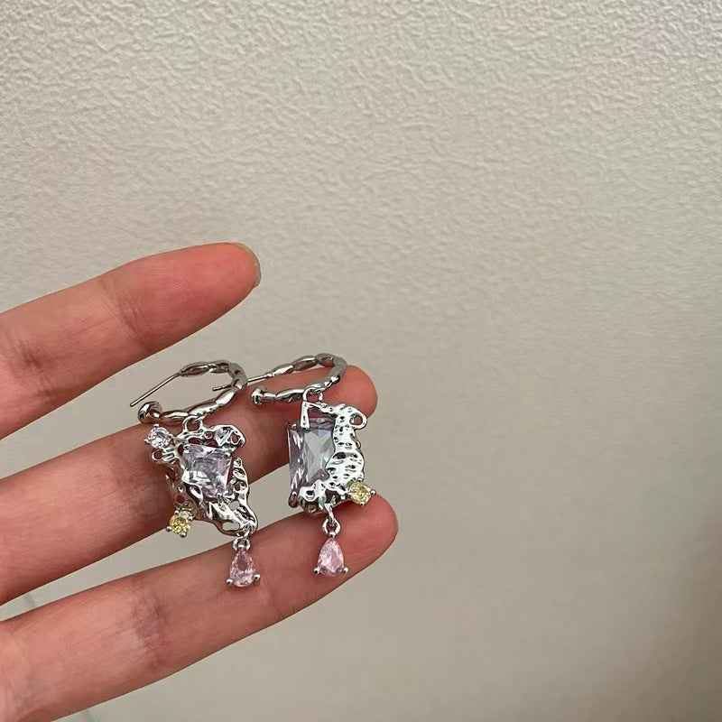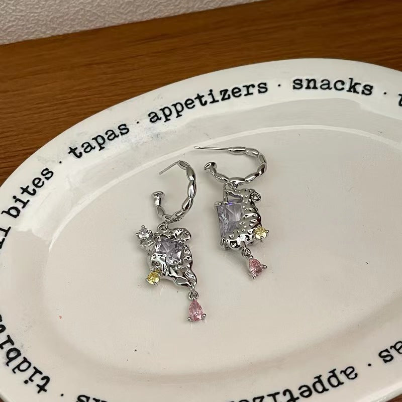 Design sense niche cold wind lava zircon tassel earrings net red personality chic niche earrings