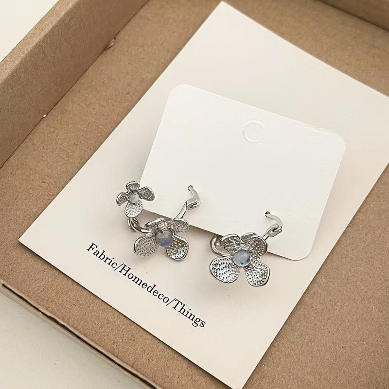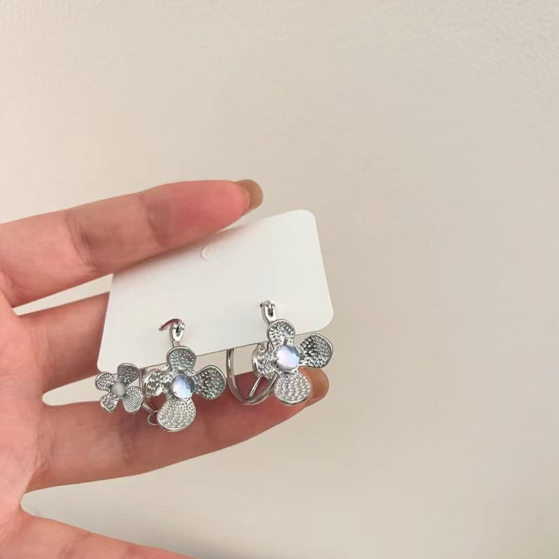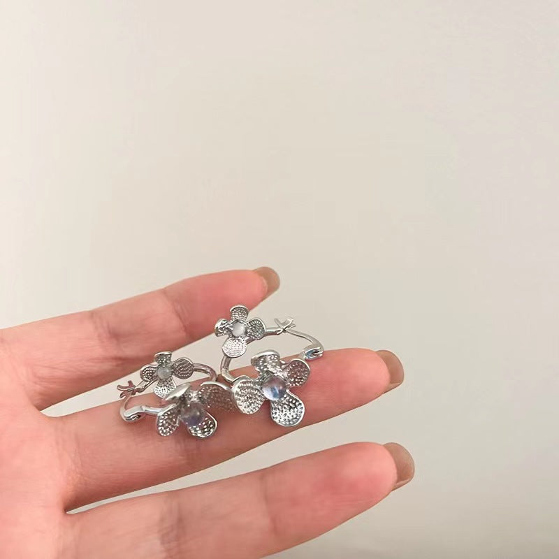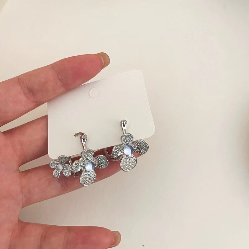 Metal flower moonstone copper earrings super fairy cold wind temperament daily with earrings earrings earrings circle net red earrings