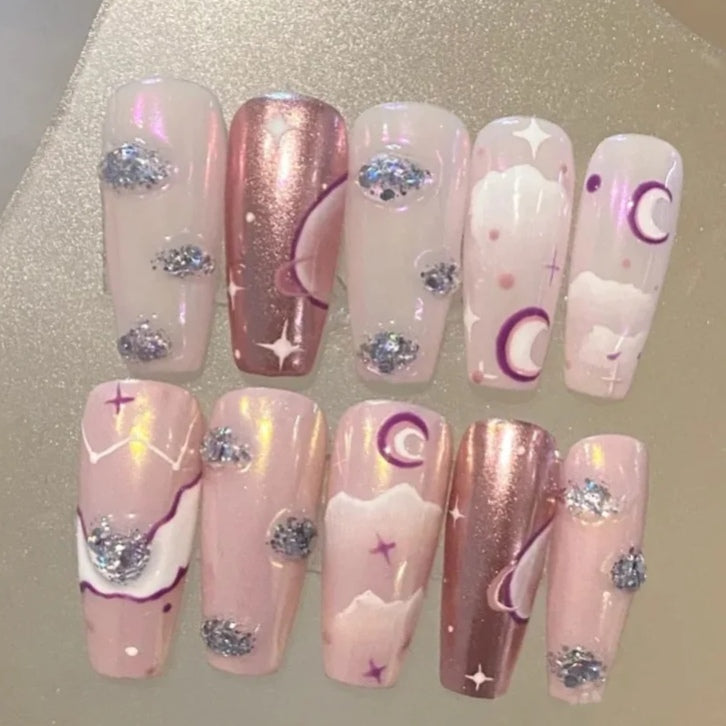 Wearing nail by hand, pure desire, French sweetheart, hot girl, love, half French removable nail patch with diamond