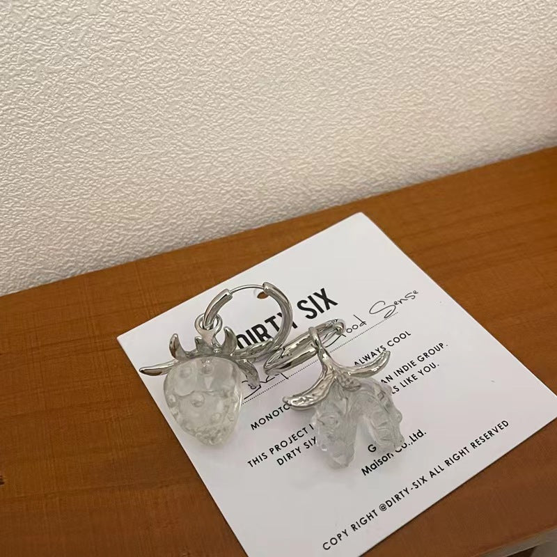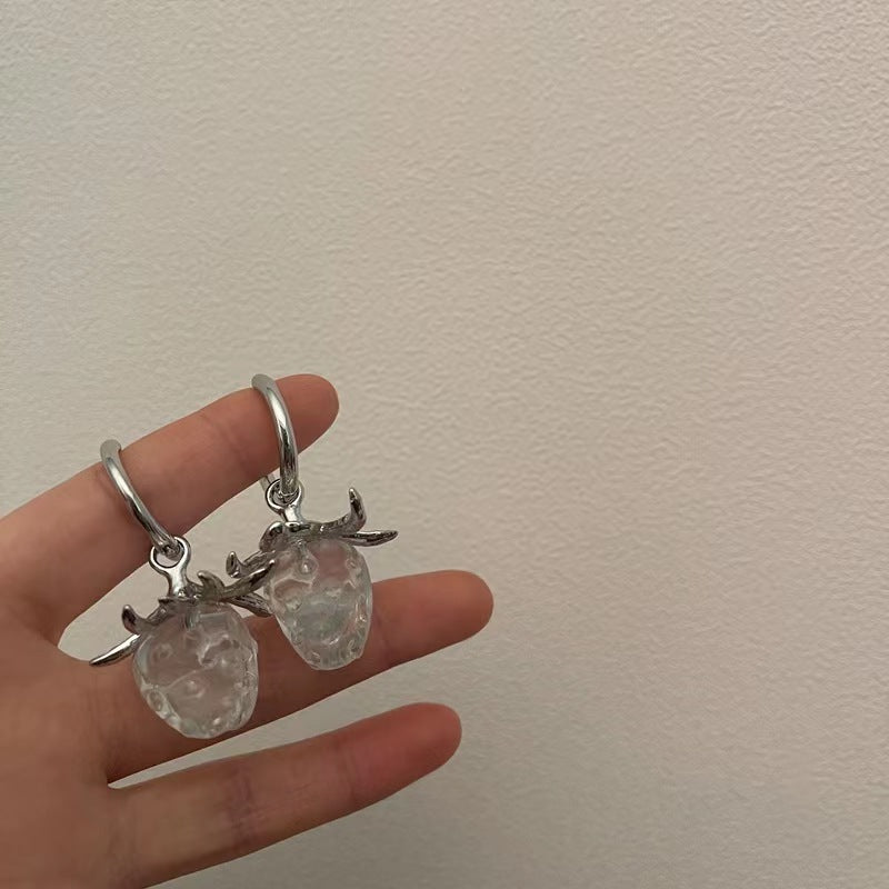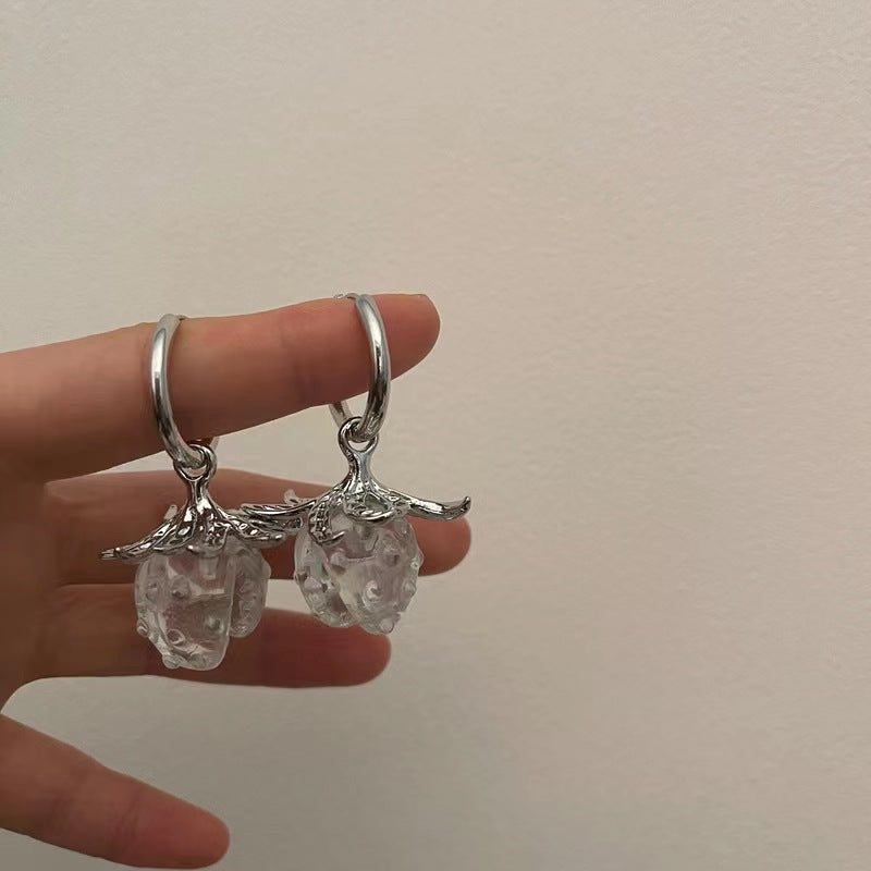 Design sense niche French strawberry earrings female fruit tassel earrings