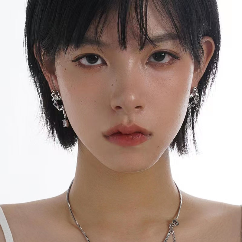 Original design, metal line winding earrings, female unique, exaggerated, simple, small
