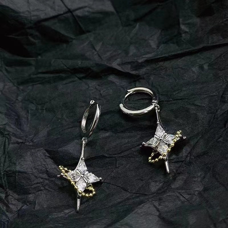 Light luxury zircon Cross Star Earrings texture Earrings Fashion Chain Earrings