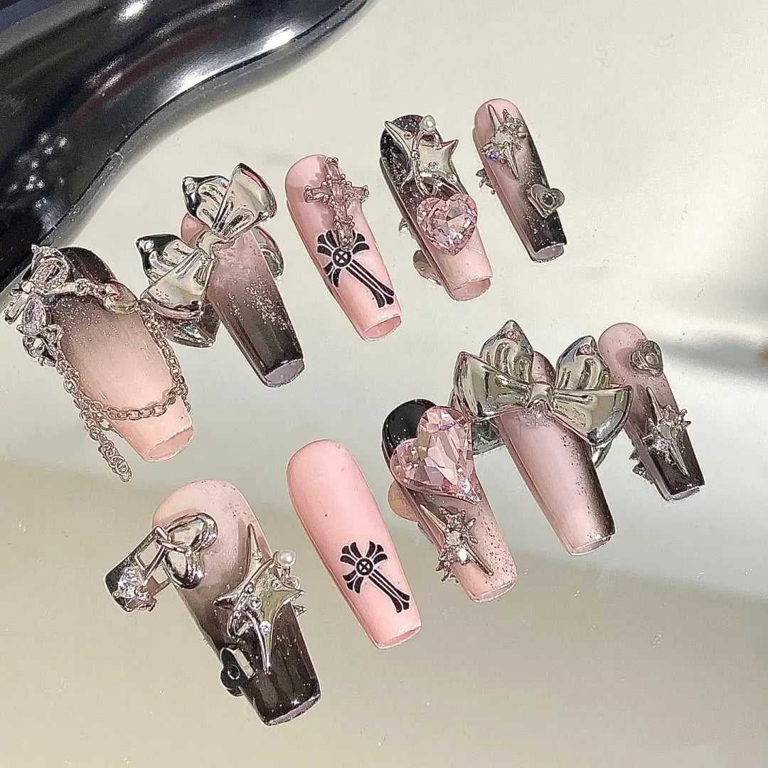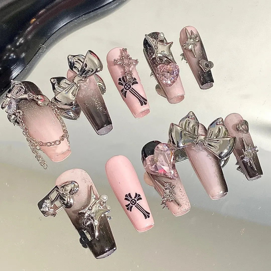 Pink Sweet Spicy Girl Cold Butterfly Princess Heavy Industry Wearing Armor Croix Heart Cross Love