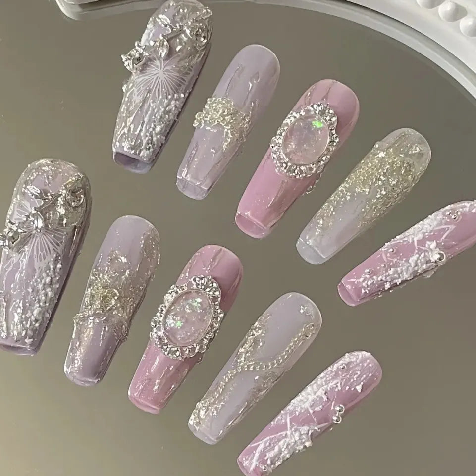 Purple pink butterfly moonlight stone opal wearing nail is handmade