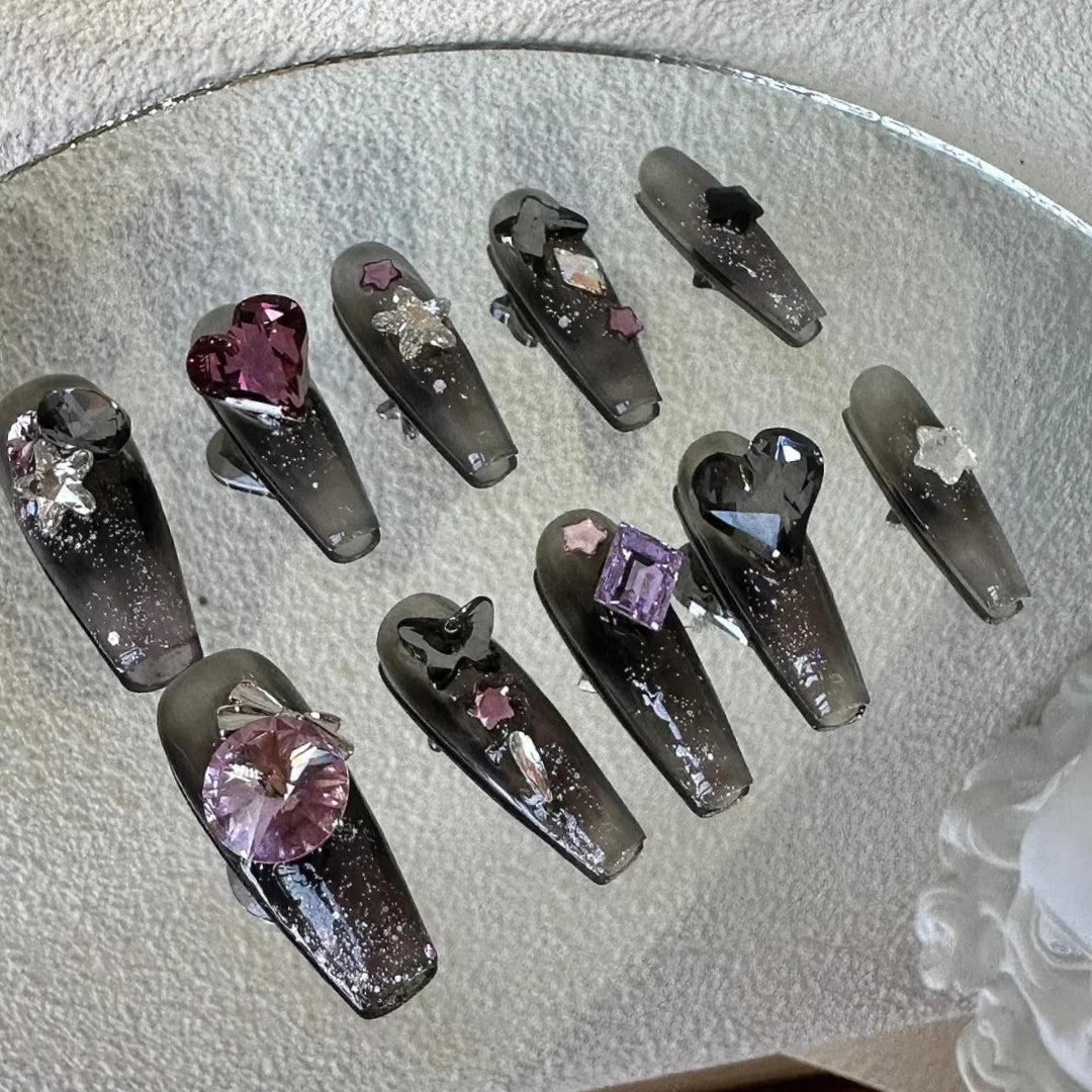 Swarovski Twisted Heart Diamond Black Transparent Butterfly Handmade Armor