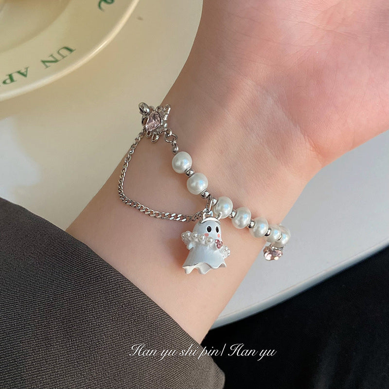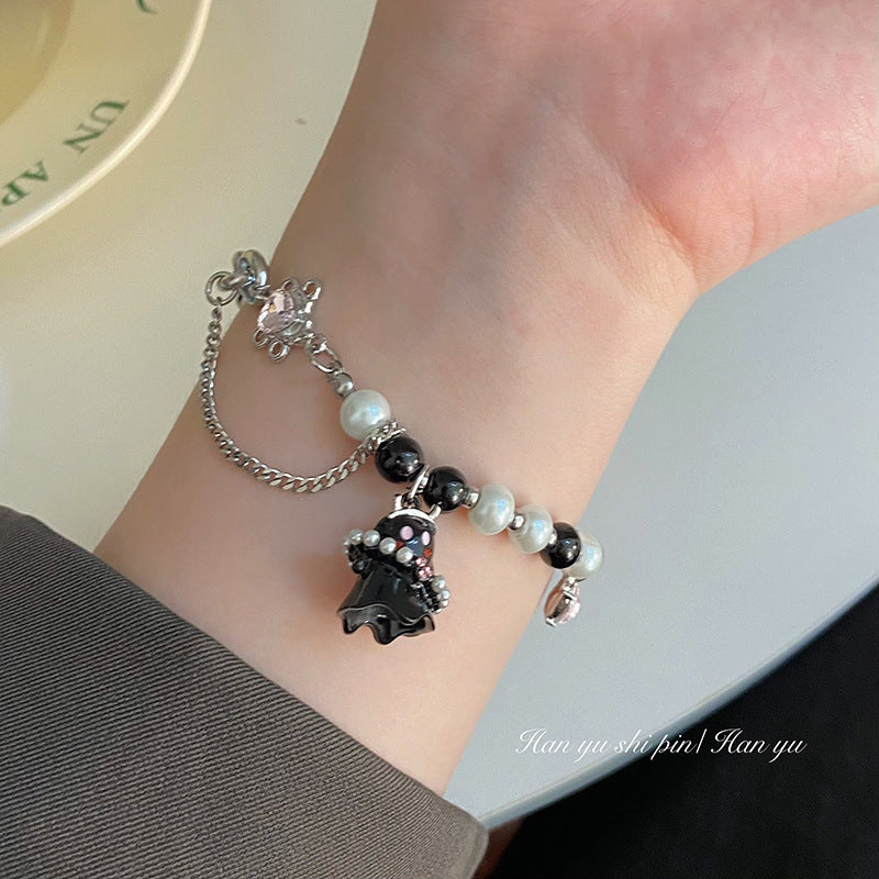 Sweet and cool black and white ghost bracelet personalized niche design cold wind double-layer beaded couple bracelet
