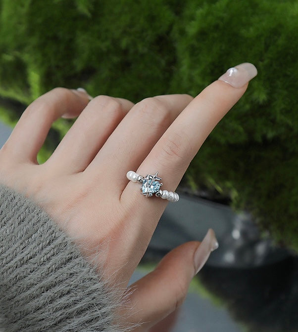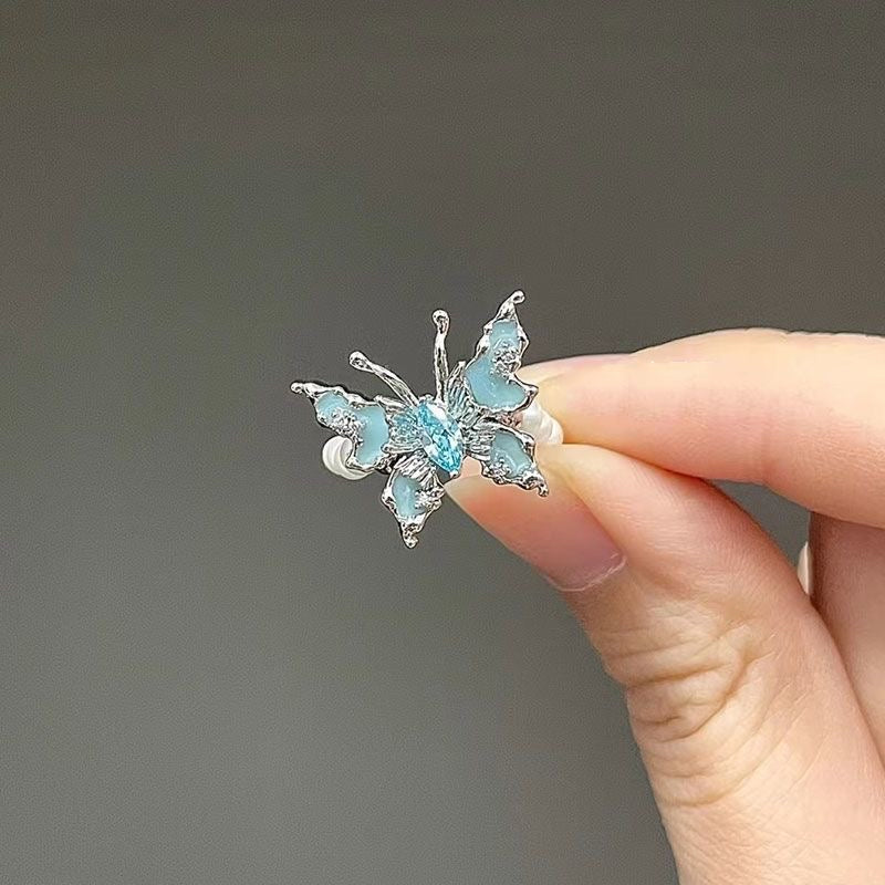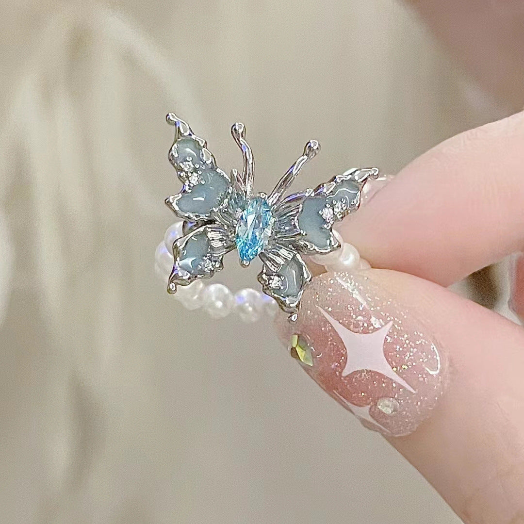 Blue butterfly pearl ring