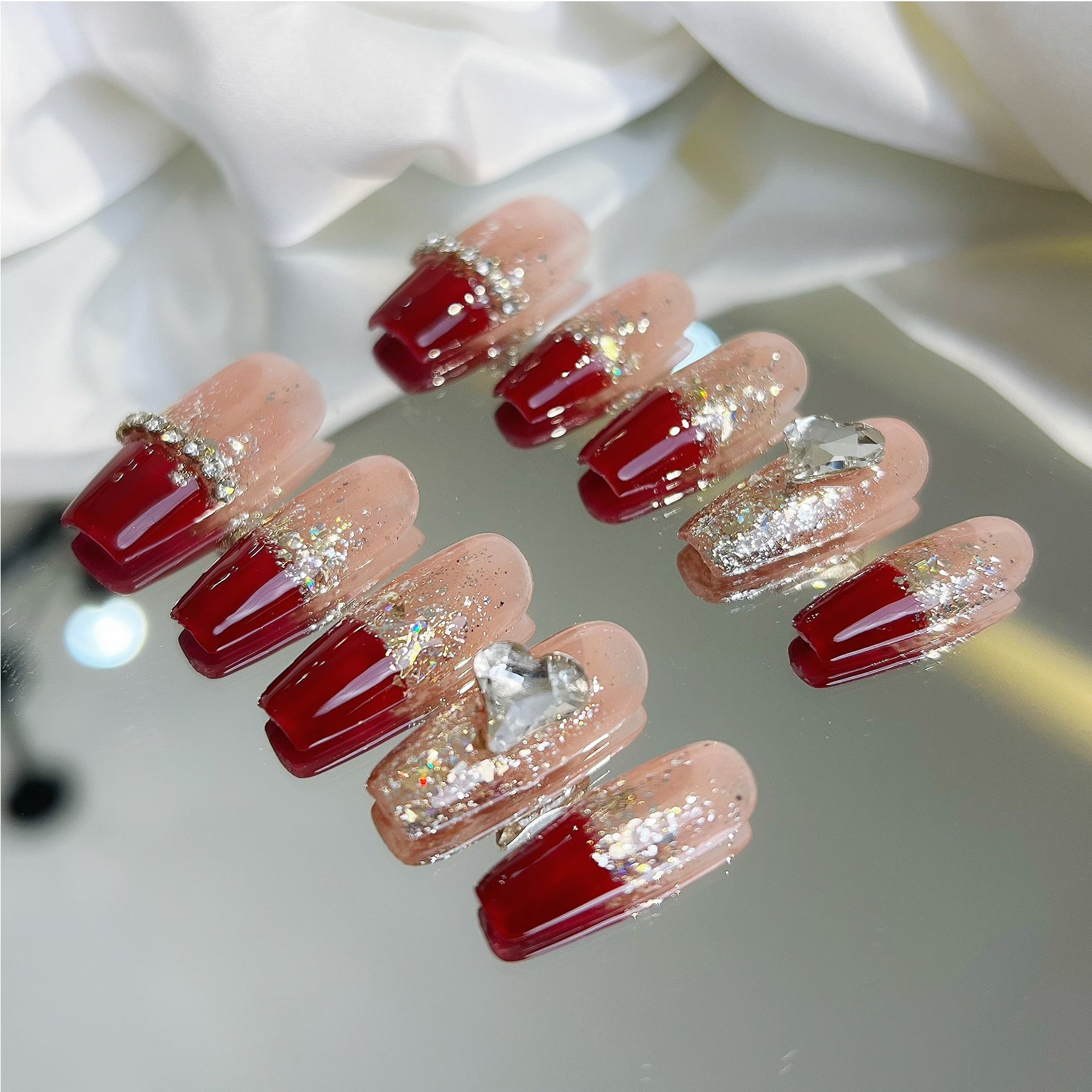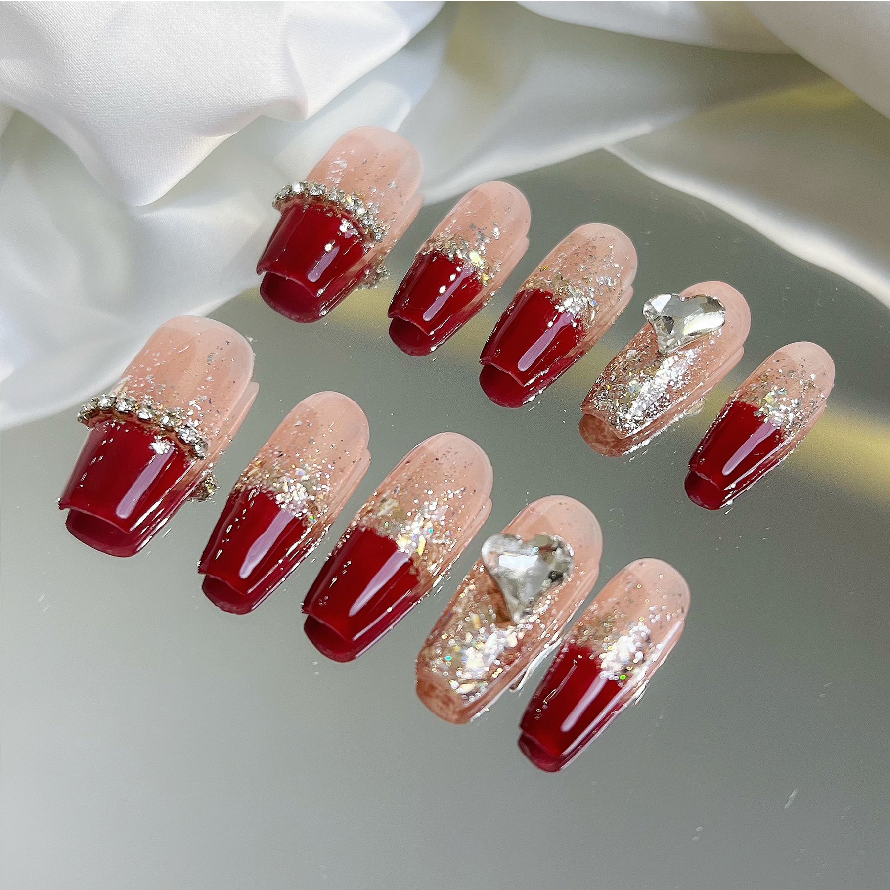 2023 New Year's Red Handmade Net Red Wearing Armor New Flash Autumn and Winter Advanced Feel New Year's Customized Finished Nail Enhancement