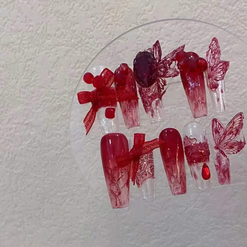 2024 New Vintage Dry Rose Blood Butterfly Liquid Tear Butterfly Thin and Tough Nail Enhancement