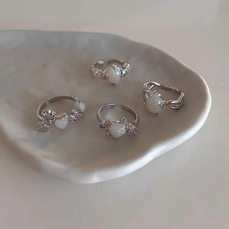 A niche design with irregular metal cat's eye stone heart opening ring for women's retro personality and minimalist temperament ring