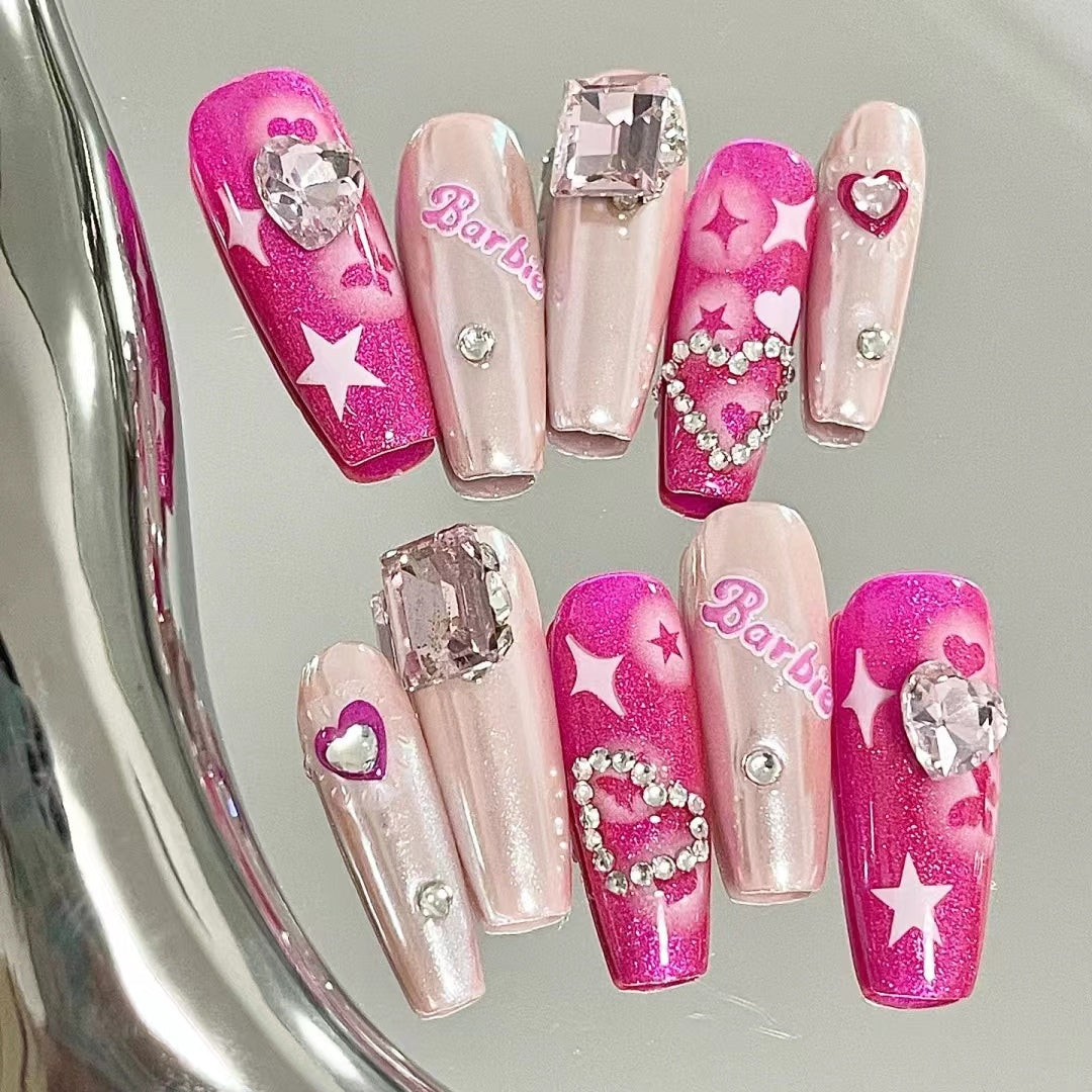 Barbie Bubble: Expanding Y2K Spicy Girl Diamond Nail Decoration Love Star Four Eyes