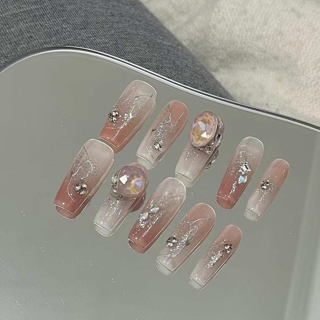 Baroque princess has a clear sense of atmosphere and a clear love of sticking diamond, wearing manicure artificial nail stickers by hand, phototherapy nail patch finished product