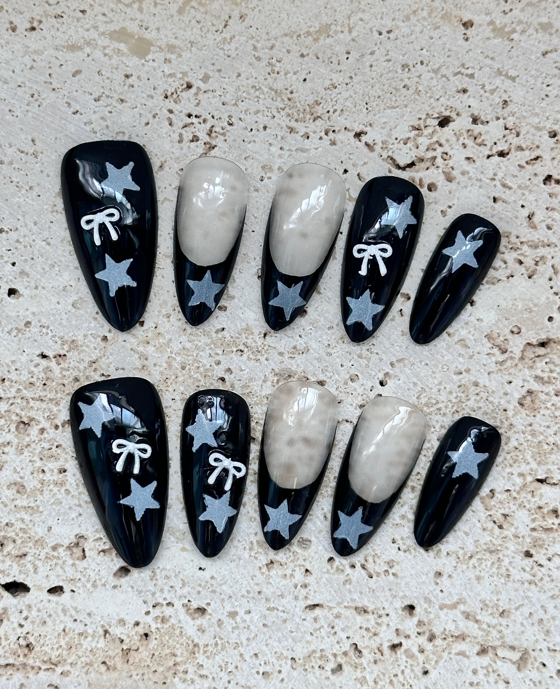 Black five-pointed star silver bow