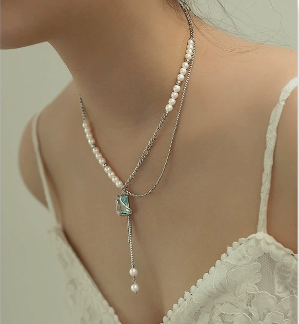 Blue glass series necklace female wholesale niche design new Chinese senior sense of fresh sweet cool wind collarbone chain jewelry