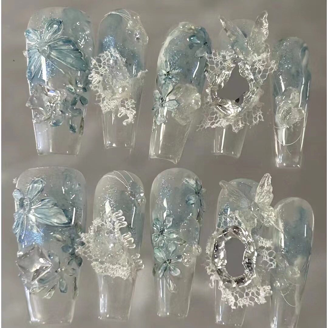 Blue ice butterfly flower cool nails