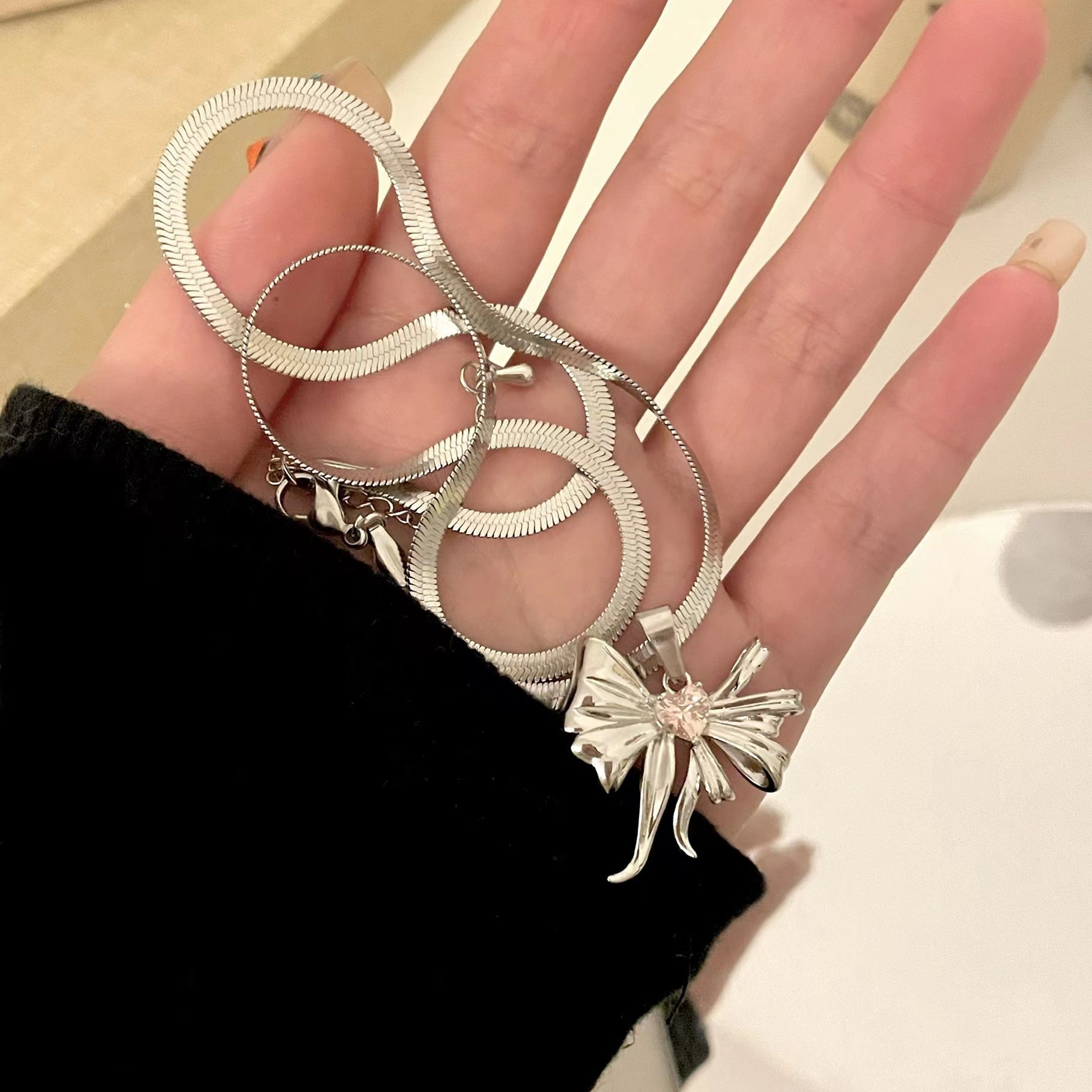Bow Necklace Earrings 2021 New Feminine Style Simple Versatile Texture Design Luxury Clavicle Chain Fashion