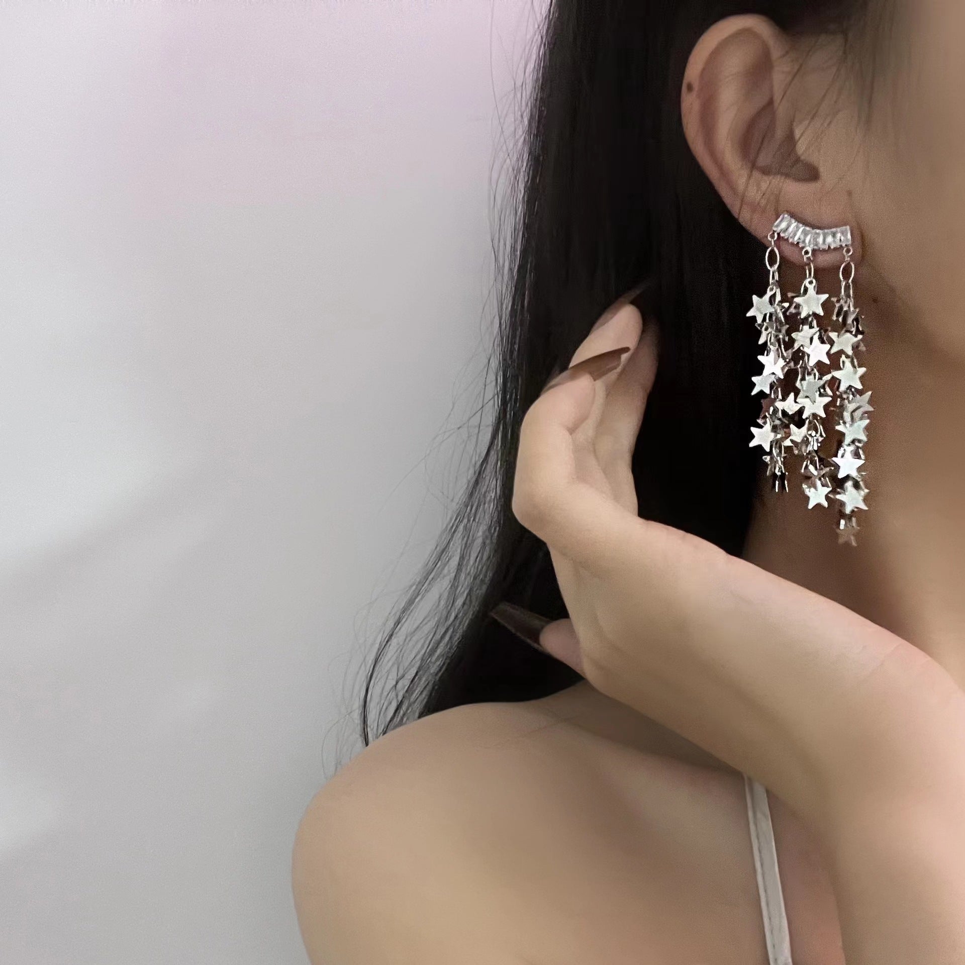 Butterfly glitter necklace, female dark collarbone chain, multi-layer neck chain, European and American niche Gothic trendy cool earrings