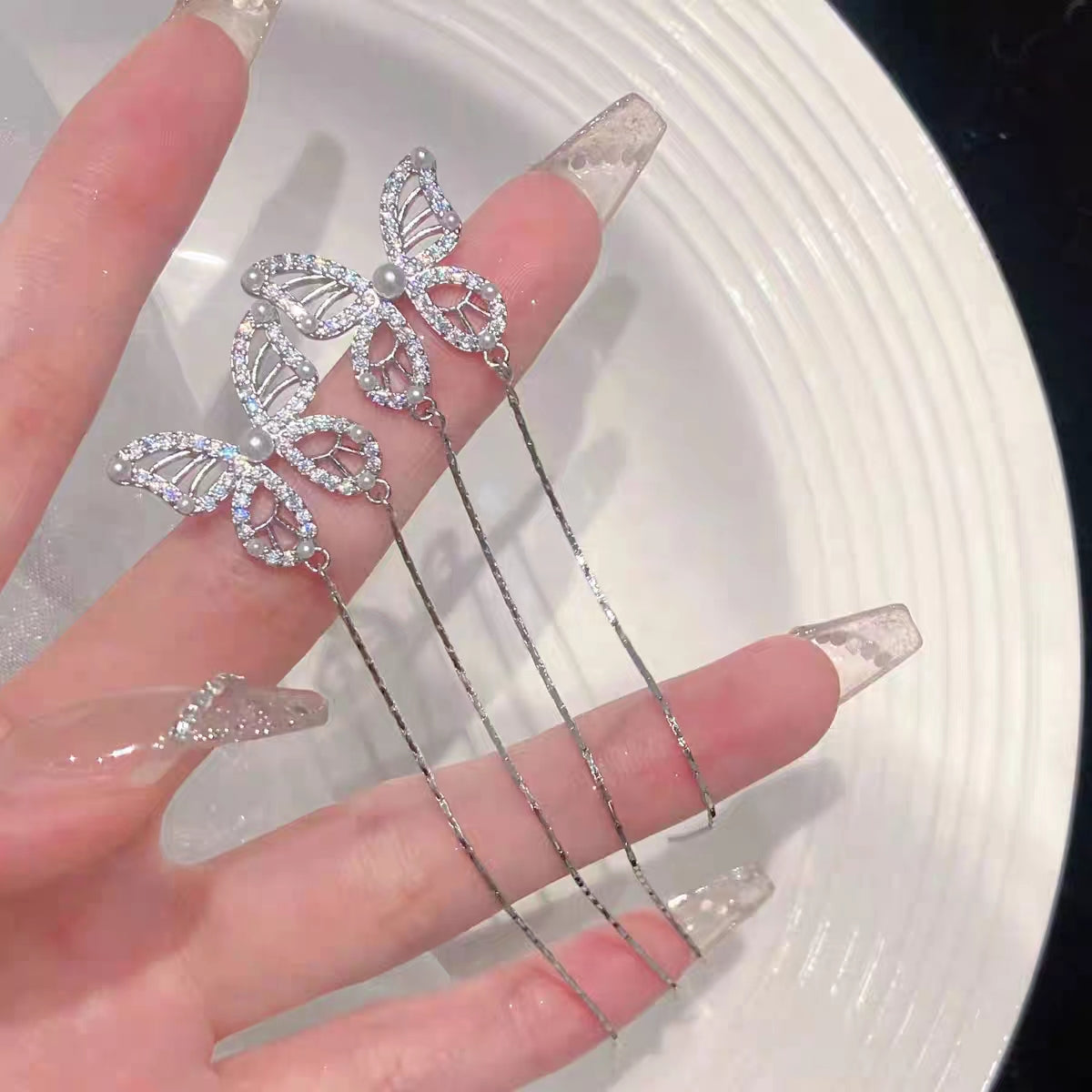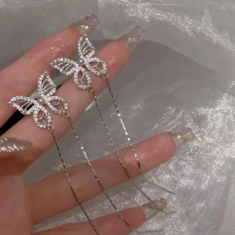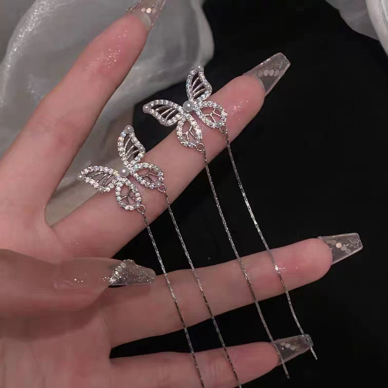 Butterfly Tassel Earrings Earrings Earpins Female Round Face Slim and High Grade Feel Cold Wind Mesh Red Earrings