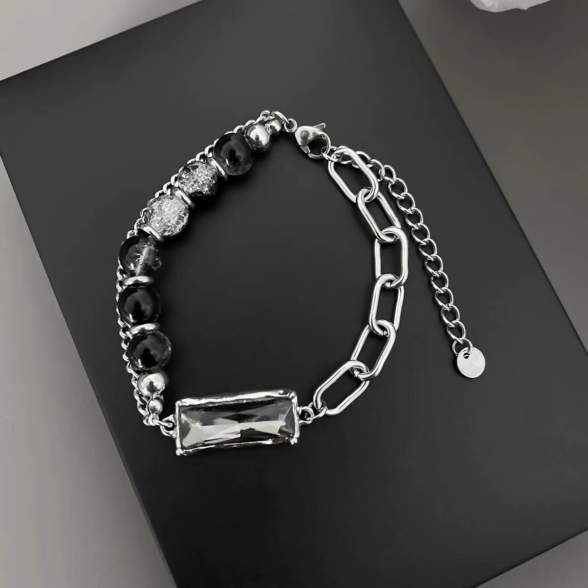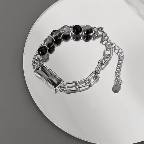 Black gemstone beaded bracelet with premium feel