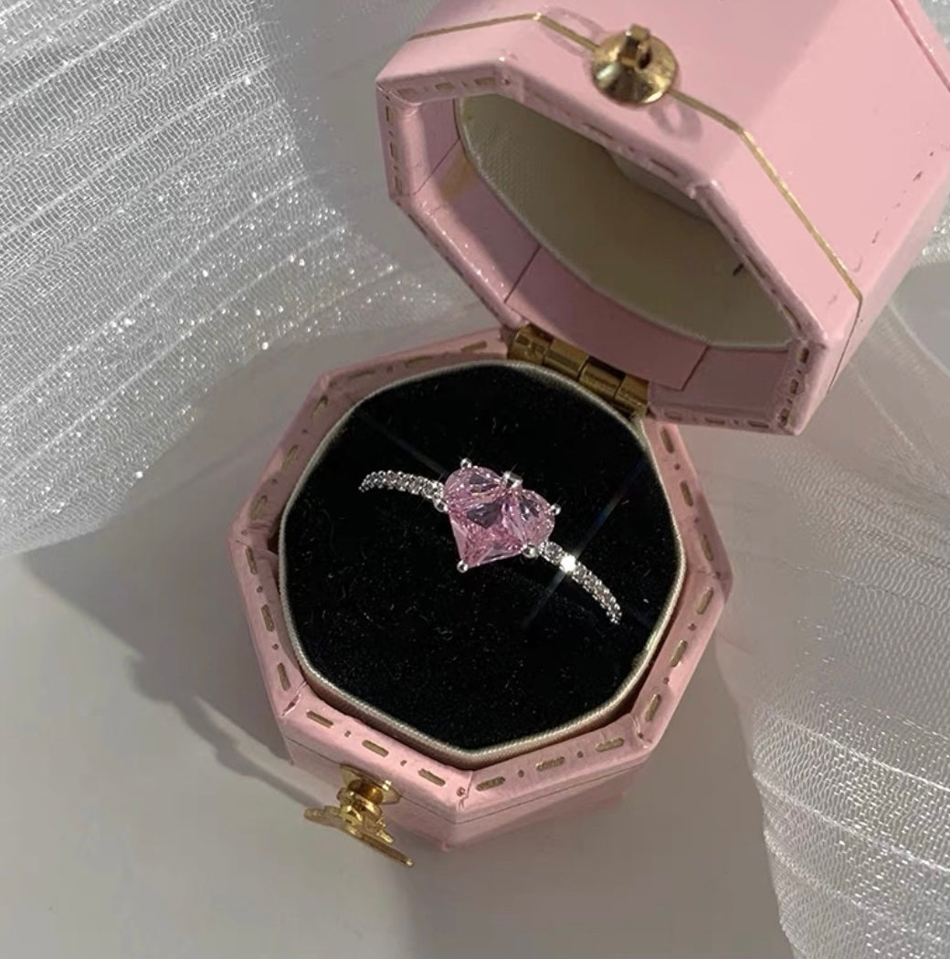 Cherry blossom pink ring six-piece set sweet flash diamond love gemstone butterfly ring