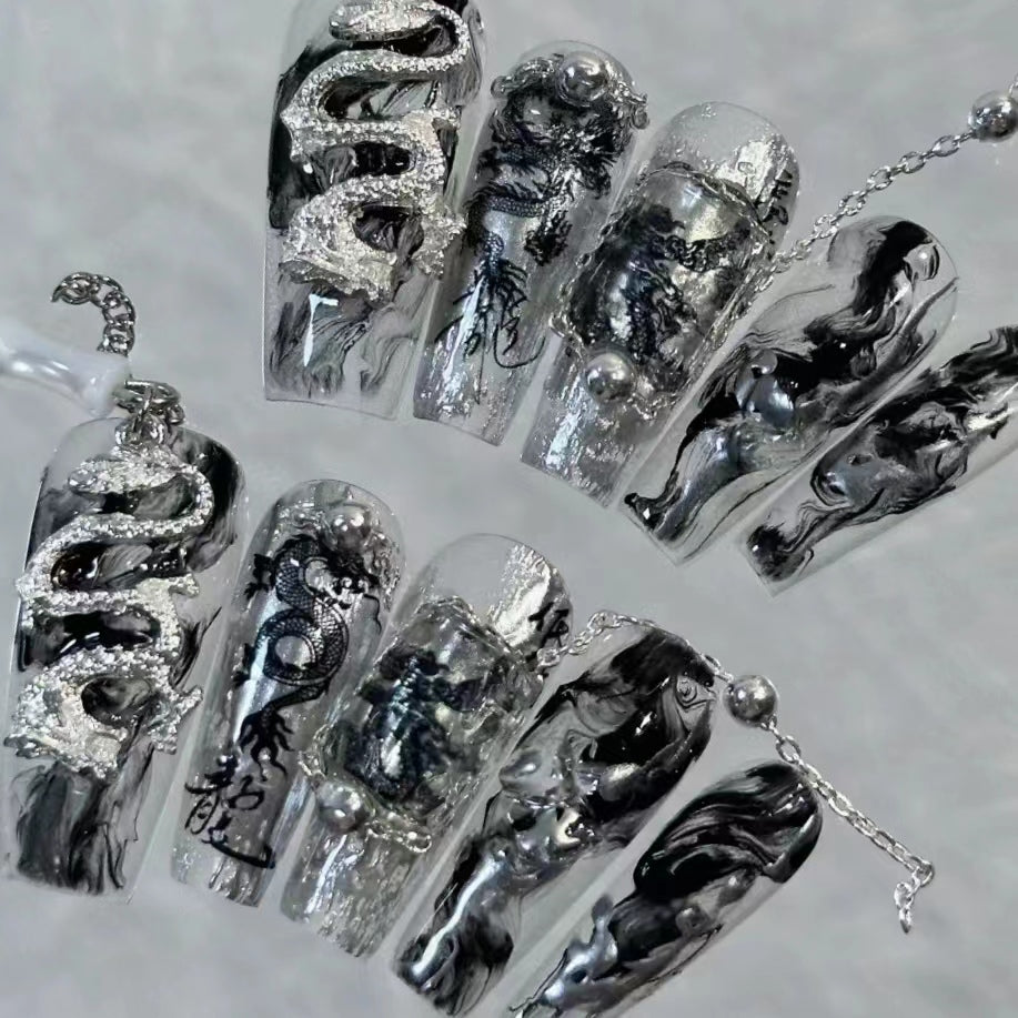Chinese style gold silver alloy dragon new Chinese style ancient style nails