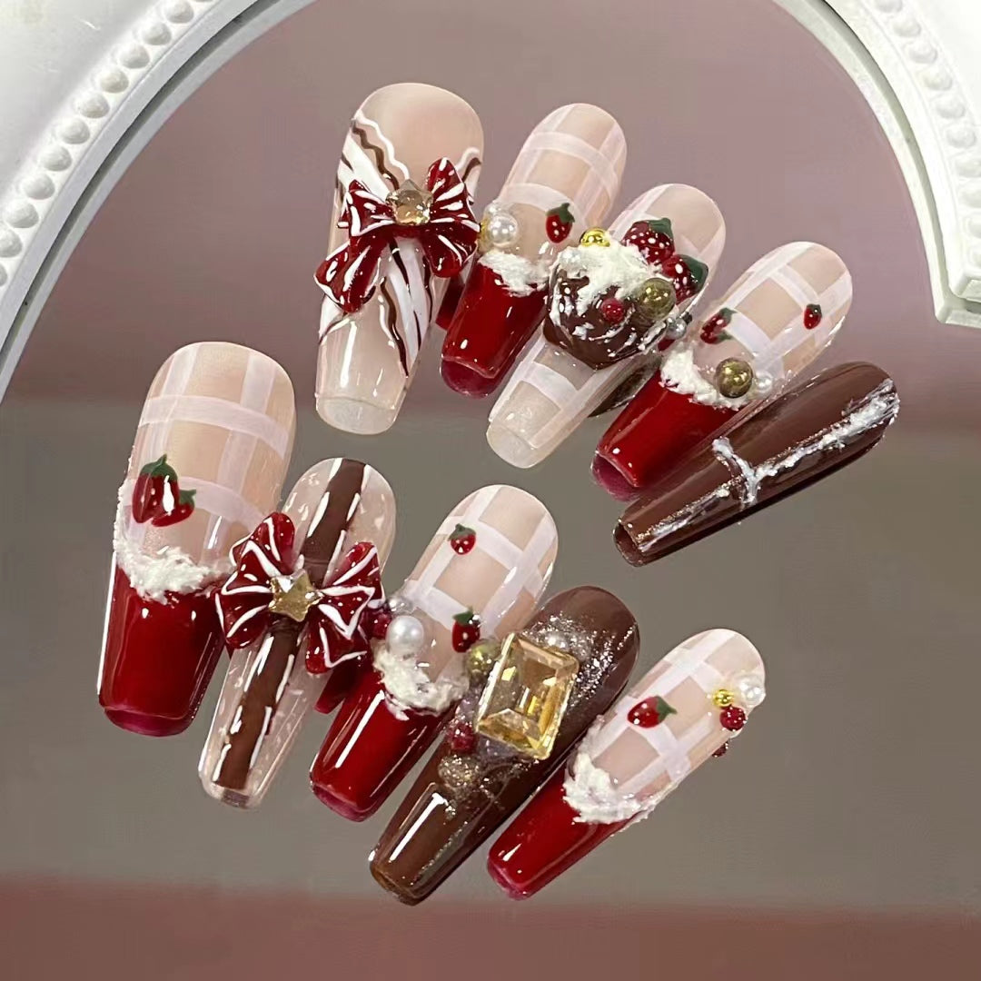 Christmas nail art, fairy like cat eyes, exploding Christmas tree, handcrafted, detachable wearing armor