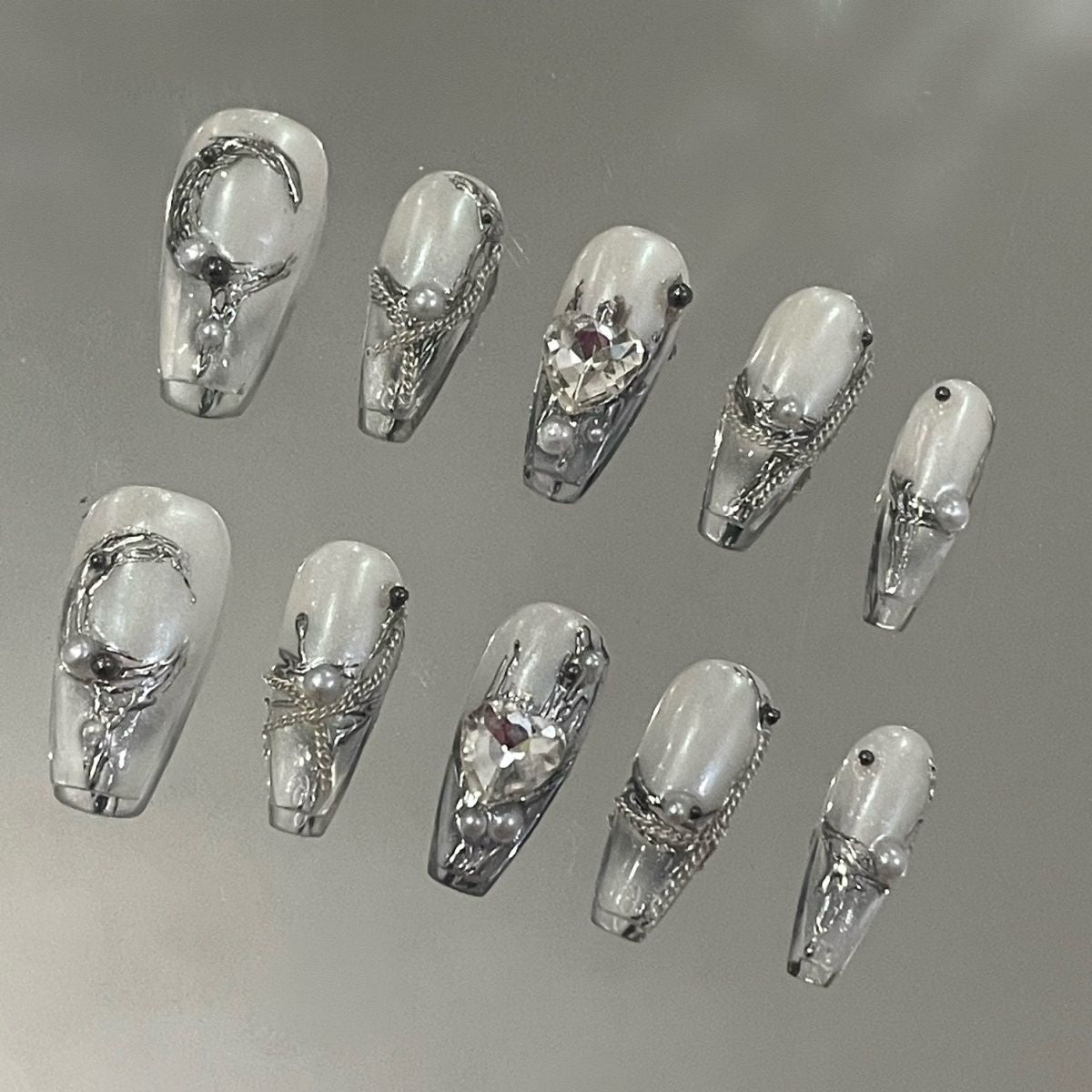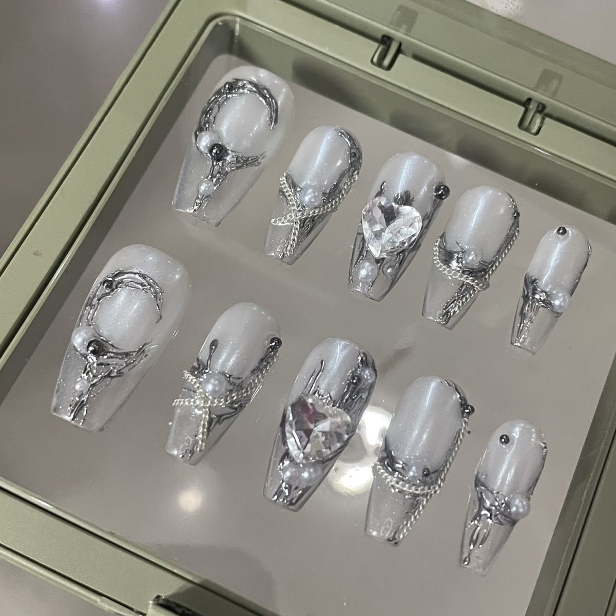Clear cold white moonlight handmade nail beads heavy industry advanced love nails
