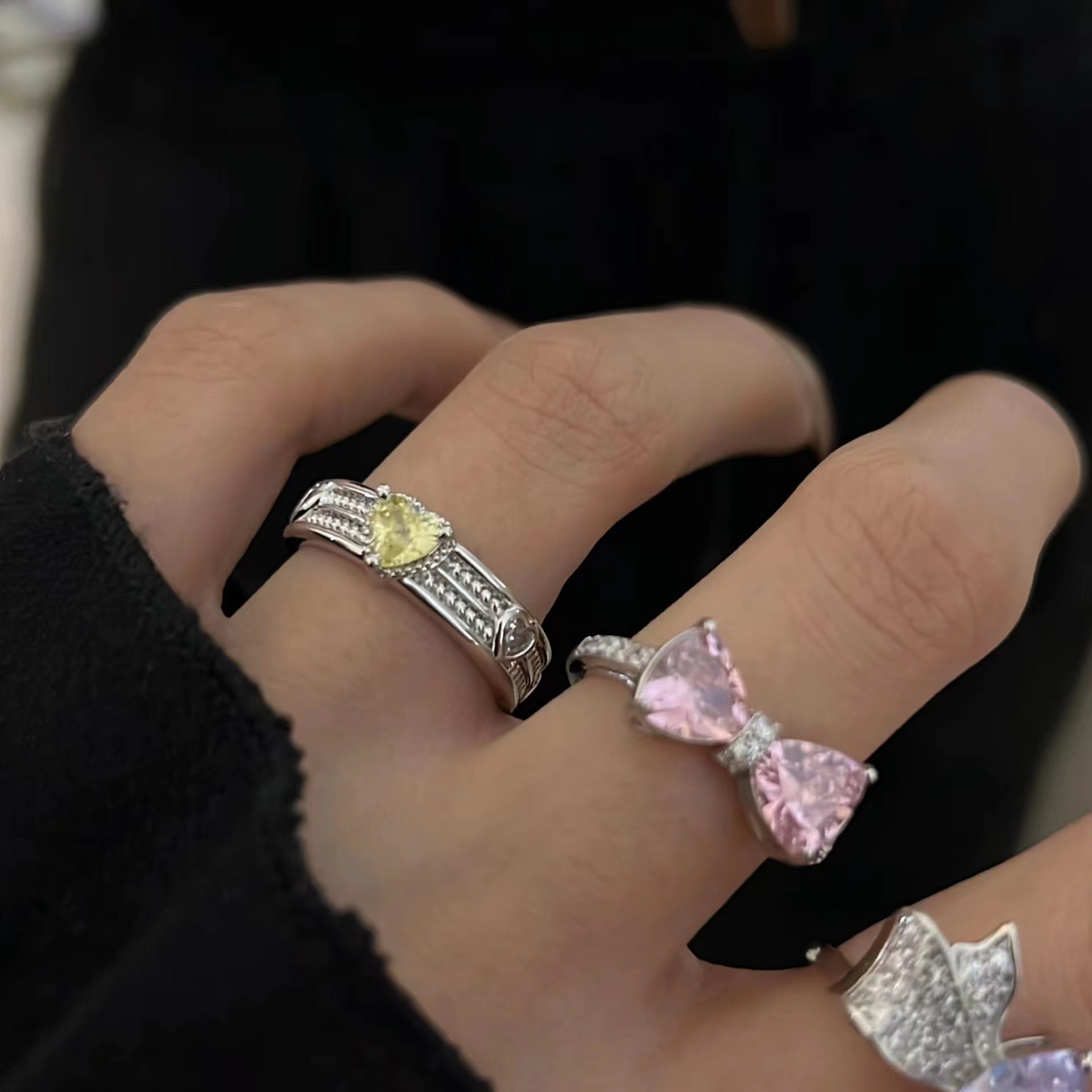 Coco Lane Sweetheart Princess Exquisite Pink Diamond Bow Knot Sweet Temperament Ring ins Women's Ring Opening Tide