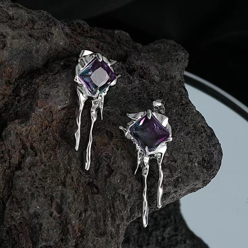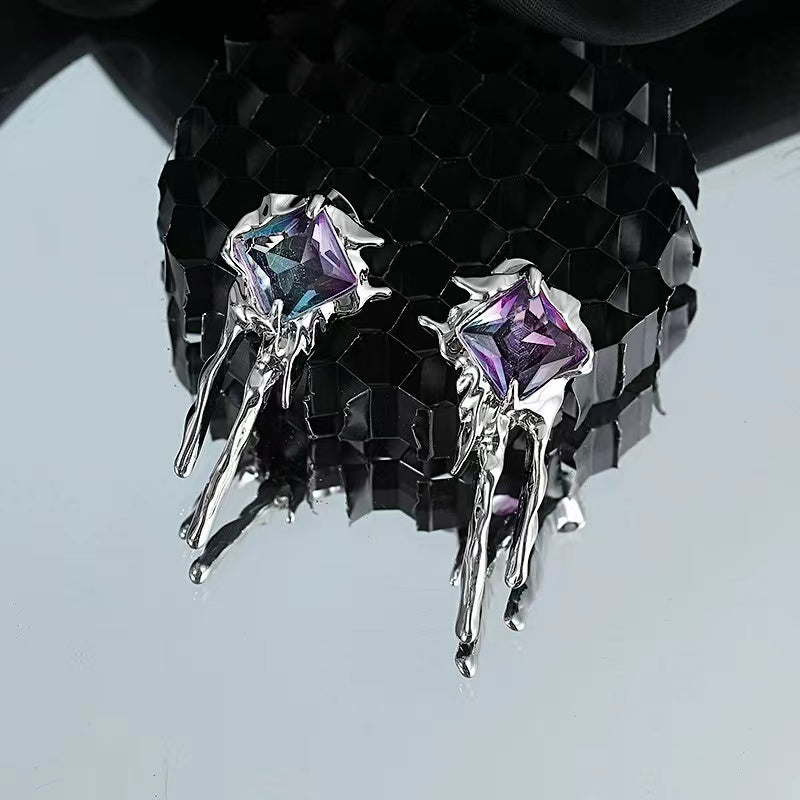 Cold wind earrings female personality exaggerated fashion lava zircon earrings niche design sense ins the same paragraph earrings tide