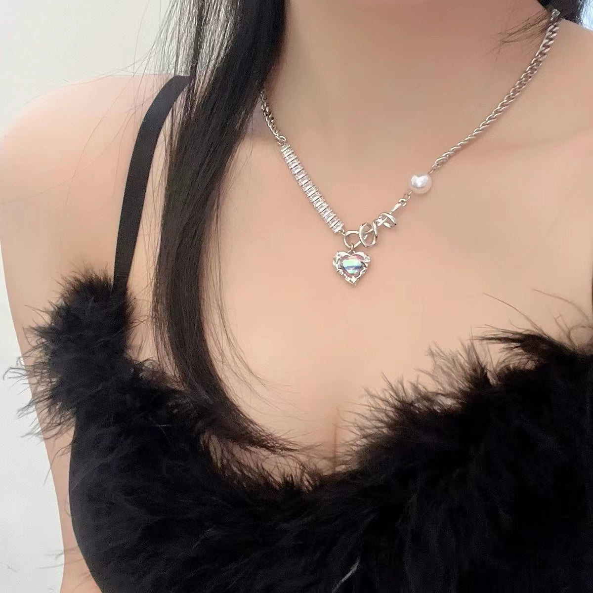 Colorful love stitching rhinestone pearl necklace female light luxury ins niche simple personality sweet cool wind collarbone chain tide