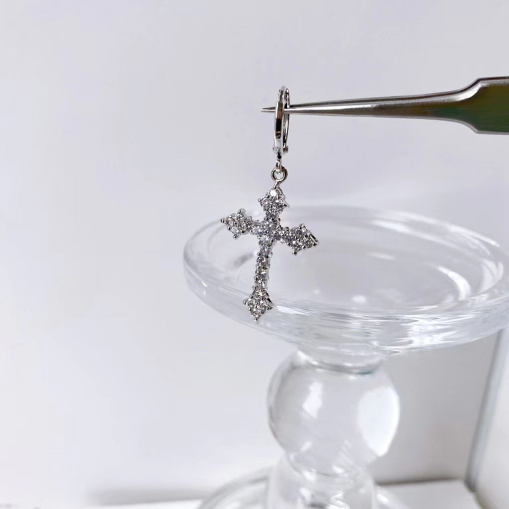 Cross Earrings, female design, long Tassel Earrings, super flash