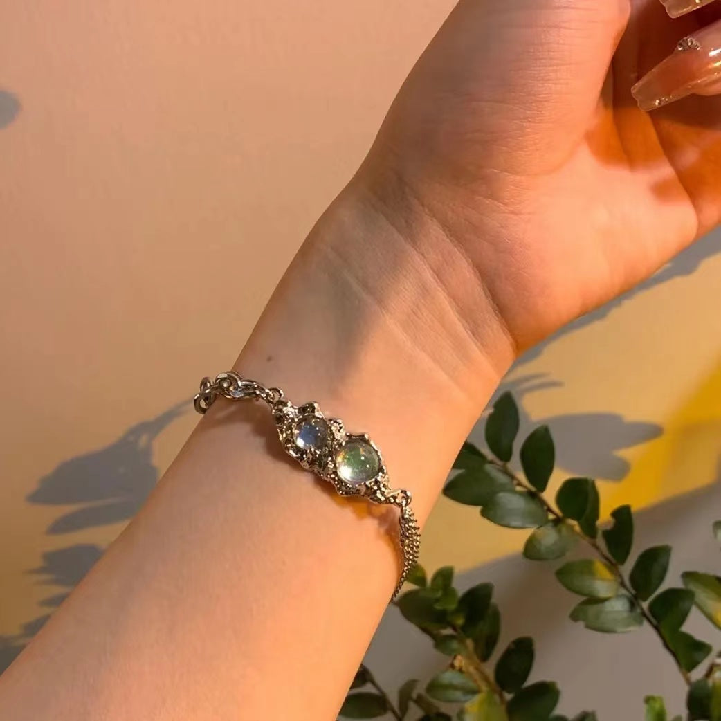 Double chain moonstone splicing bracelet female niche design premium sense of hip-hop accessories