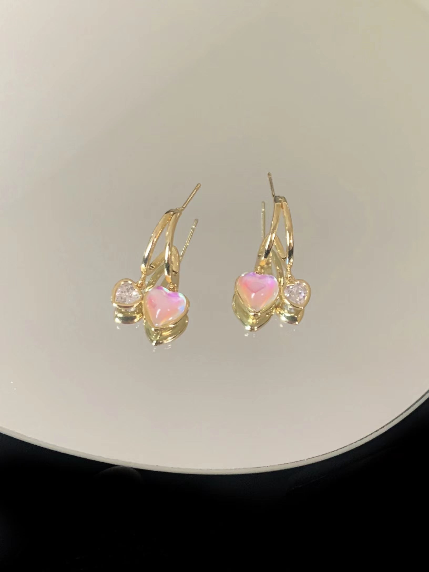 Double layer metal zircon cat eye love earrings Personalized versatile temperament earrings