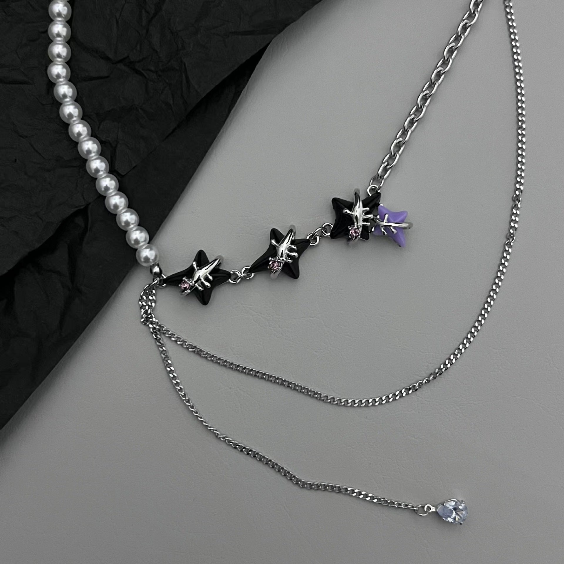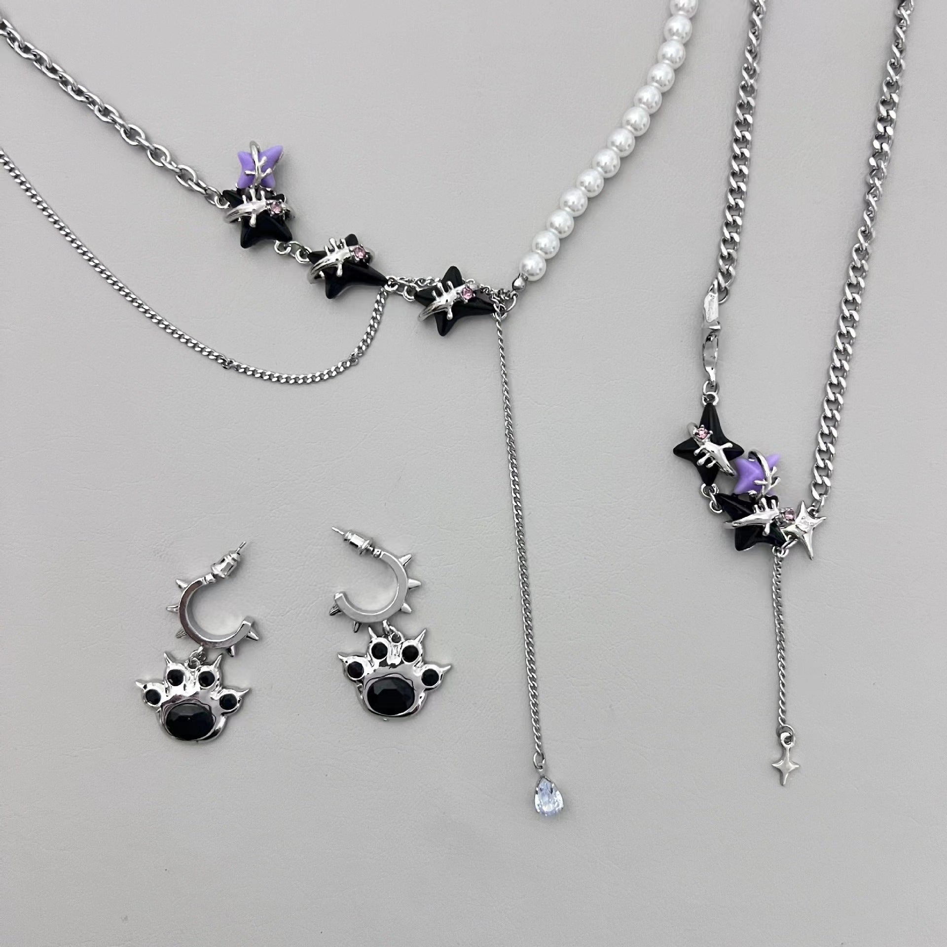 Double layered star necklace, light luxury niche, 2023 new trend, high-end design accessories, female collarbone chain earrings