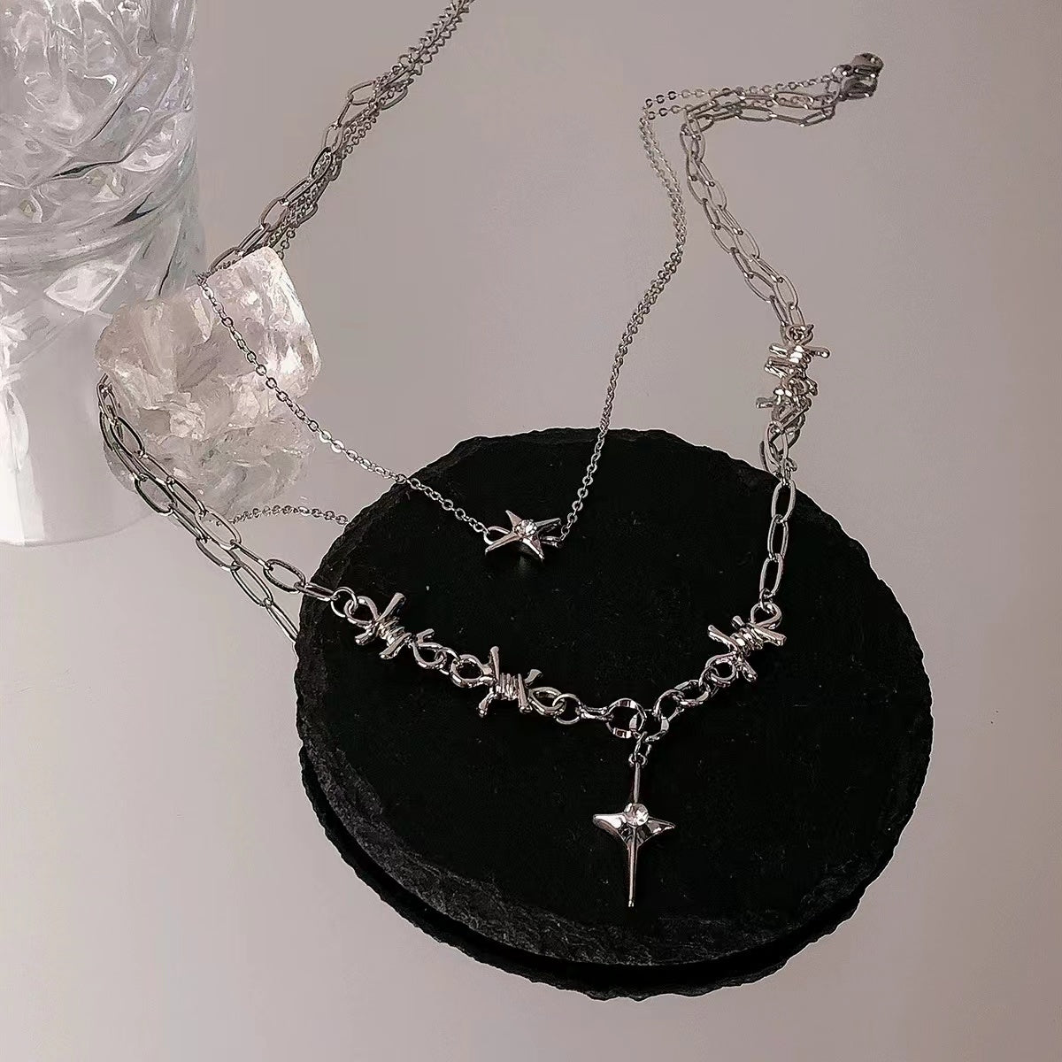 Double stacked wearing four mangoes stitching necklace female 2022 new niche design cold wind cross collarbone chain