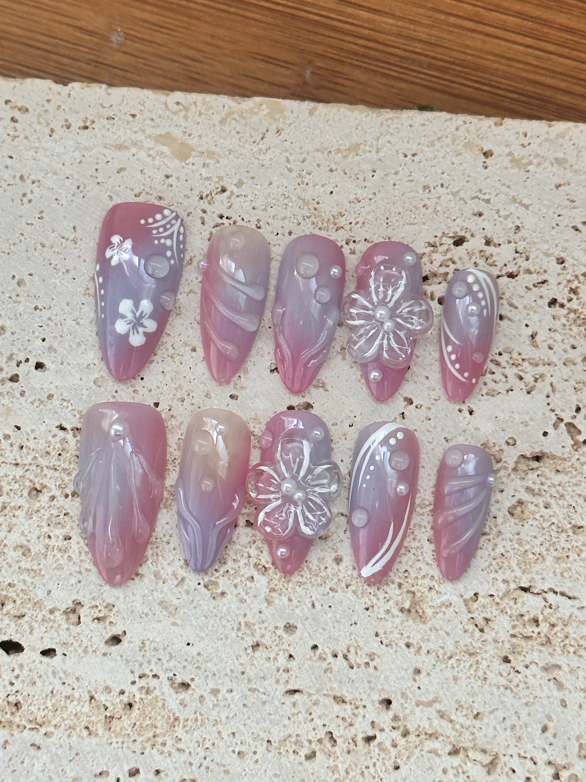 Dreamy purple hand-painted floral 3D three-dimensional wearing armor, romantic and exquisite fingertip art